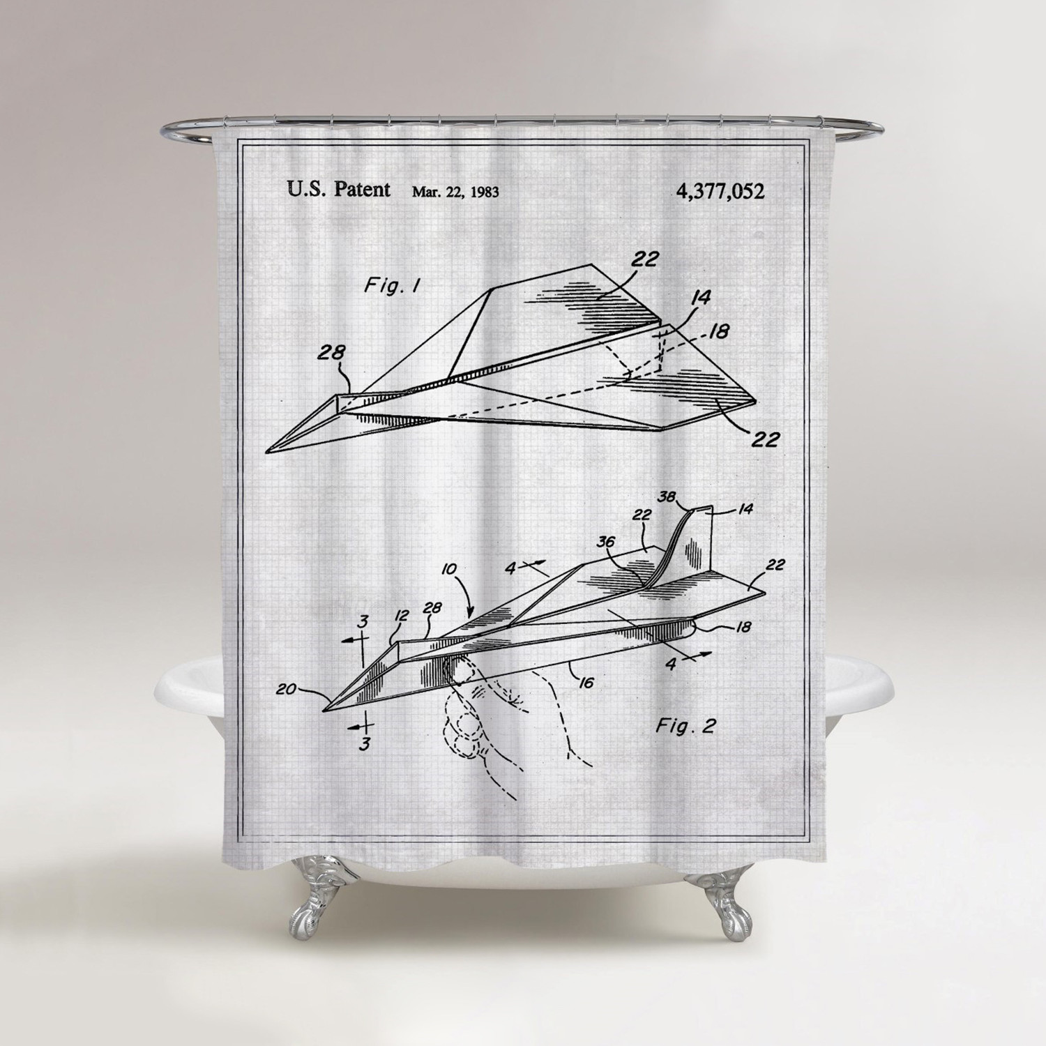 This elegant, vintage-inspired and incredibly unique shower curtain features beautiful, blueprint-style images of classic, retro objects and figures for an unmistakable detail to bring innovative flair to your home.