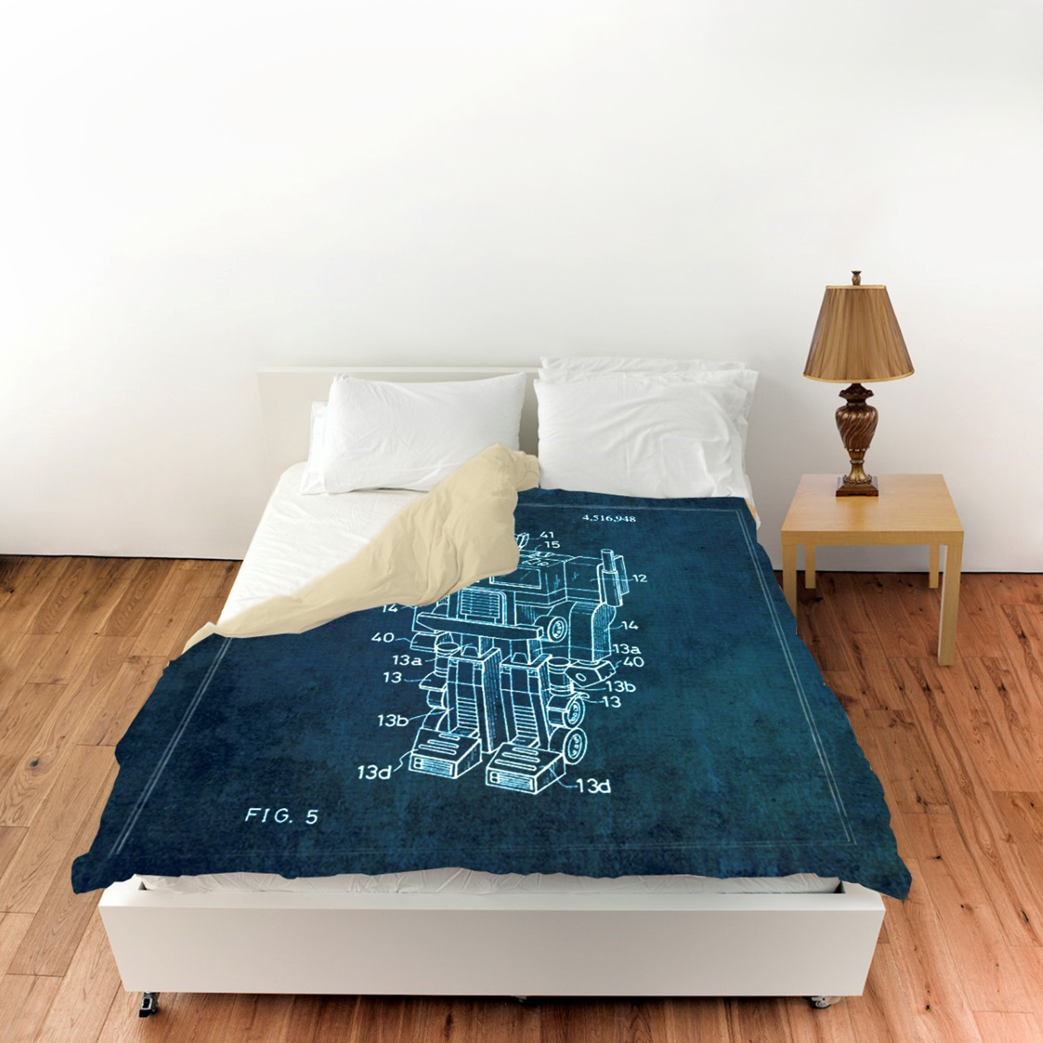 This elegant, vintage-inspired and incredibly unique duvet cover features beautiful, blueprint-style images of classic, retro objects and figures for an unmistakable detail to bring innovative flair to your home.