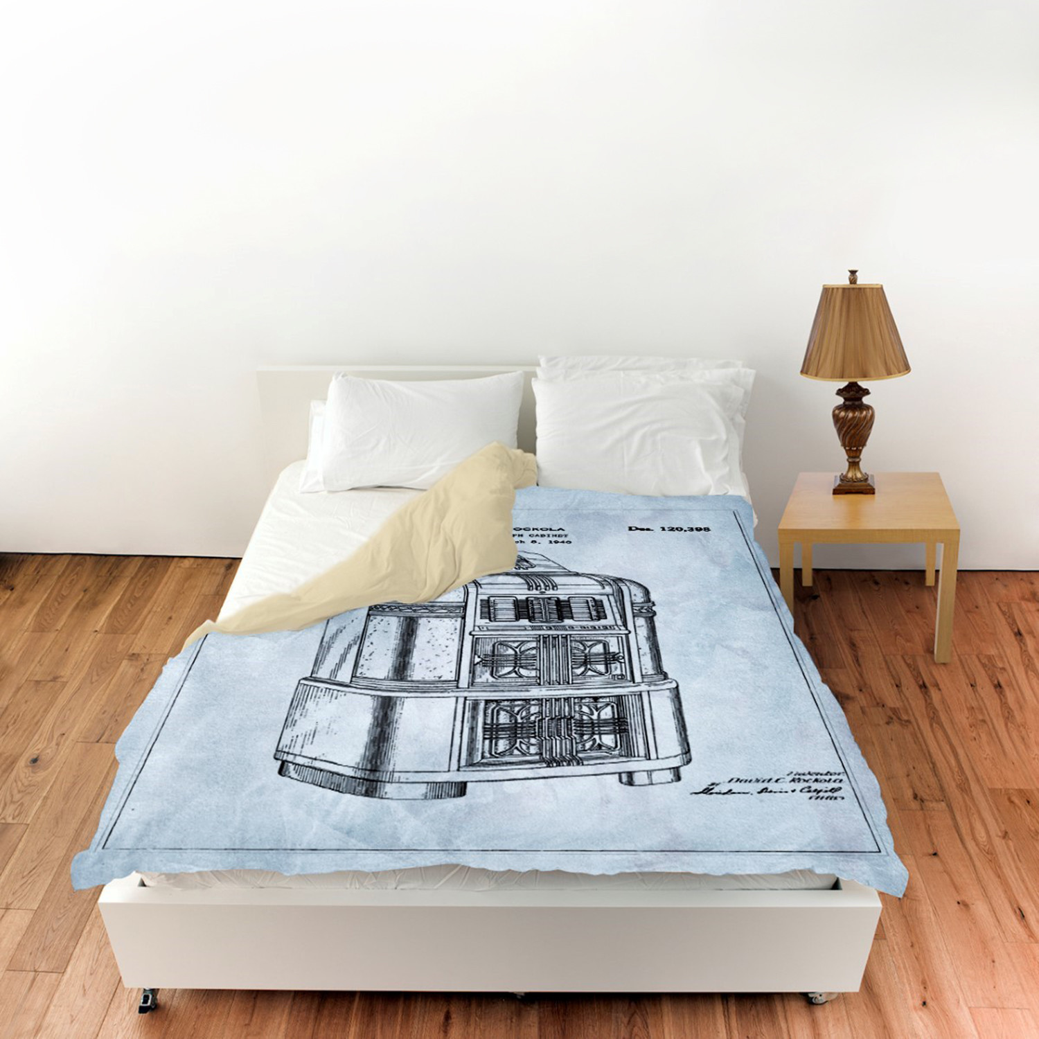 This elegant, vintage-inspired and incredibly unique duvet cover features beautiful, blueprint-style images of classic, retro objects and figures for an unmistakable detail to bring innovative flair to your home.