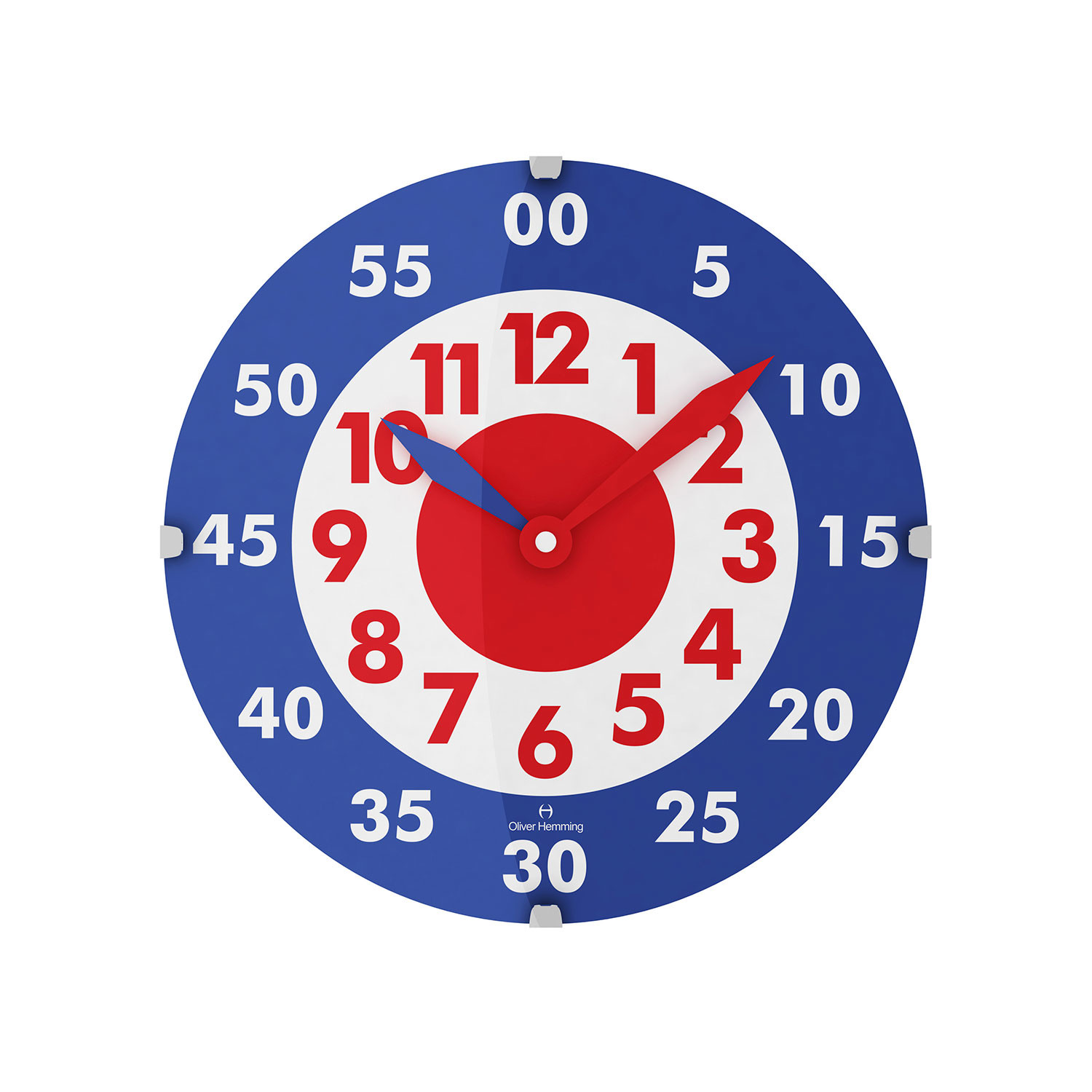 "Vitri" Collection 12" Wall Clock with Classic and Minute Reader Double Dial. Red, white, and blue bulls-eye design.