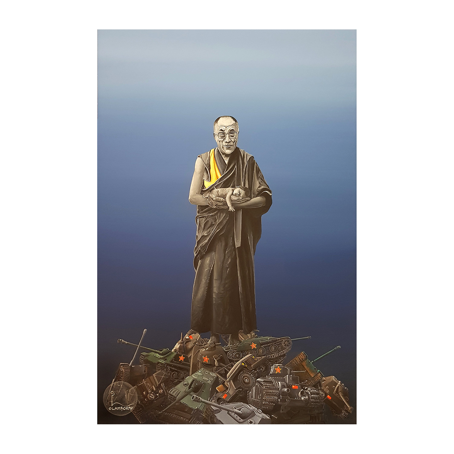 The Quintessence Beyond Time is a surrealist artwork depicting everyday life, globalization and social issues in fantastic shades of green and blue.