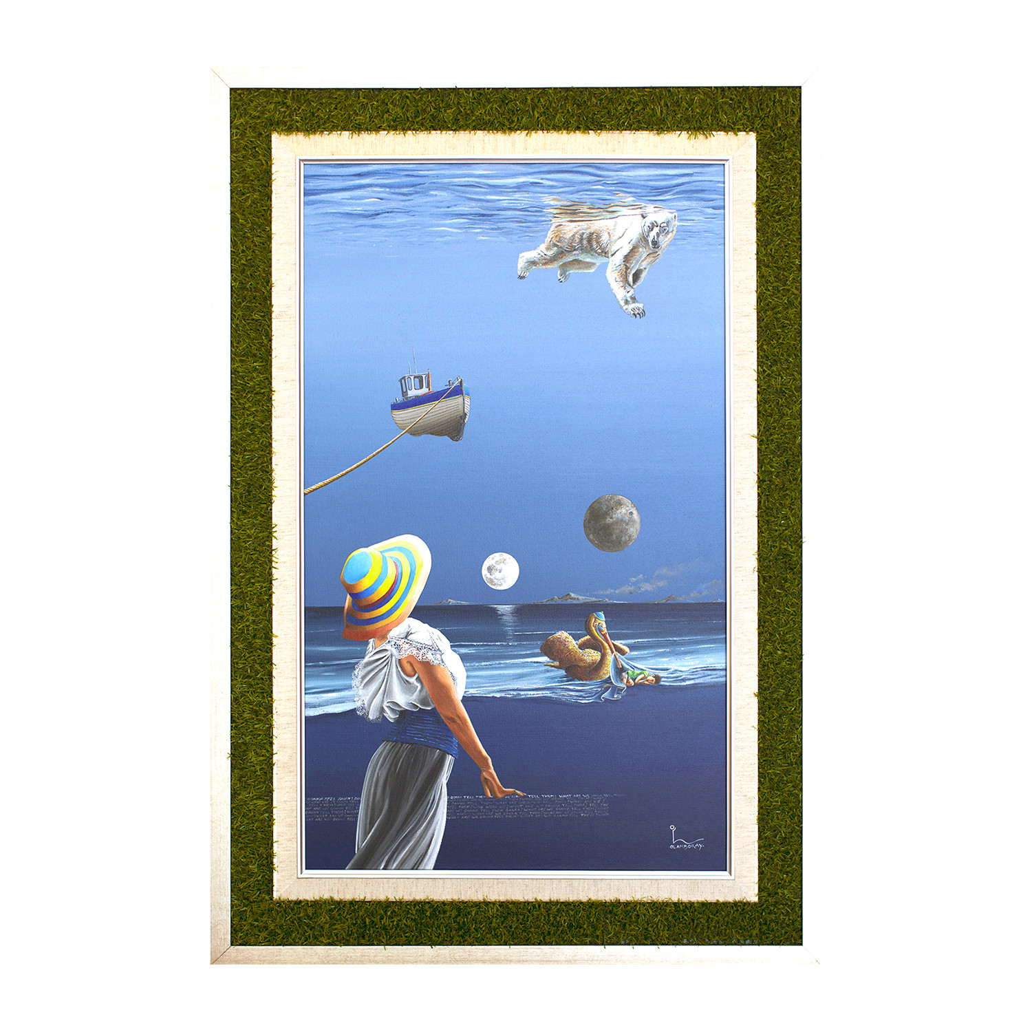 "Look at the beauty. The sound of the waves rolling on the sand. The reflection of the moon rising over the ocean. The purity of Life itself." Until We Wake Up is a stunning and surreal work of art by Olivier Lamboray, depicting scenes of animals, family and nature in beautiful shades of blue.