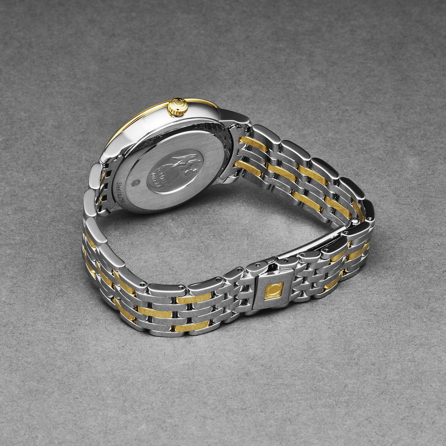 Additional info: Self-winding chronometer, Co-Axial escapement movement with rhodium-plated finish.