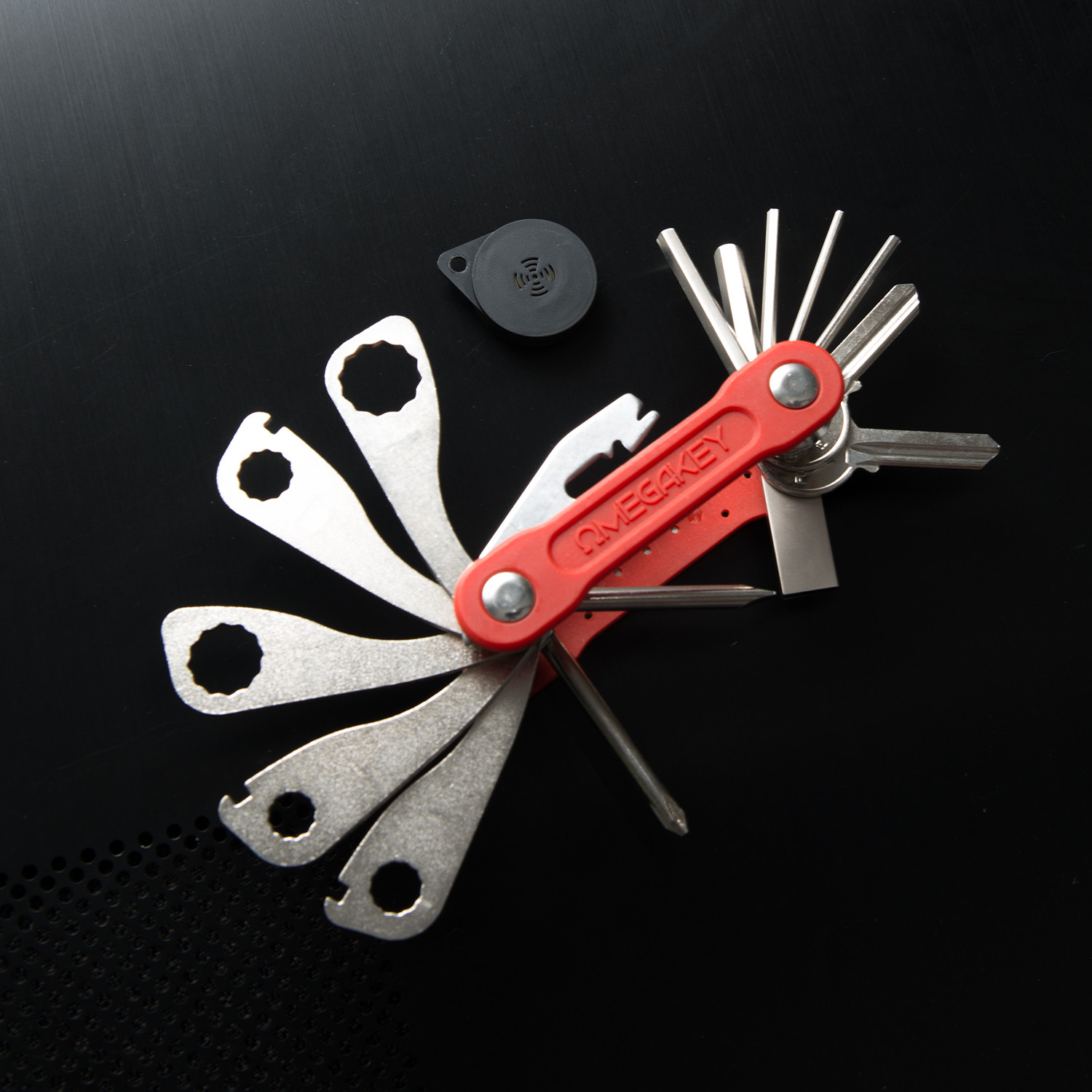 The OMEGAKEY™ is the Swiss-Army style keychain multitool and organizer that will help you streamline and locate your keys, all while outfitting it with a custom range of useful tools. This kit comes with everything you need to get through any situation, including a 64GB USB, spanners, spoke keys, hex bits, screwdrivers, and a bottle opener. The OMEGAKEY™ also acts as an extended grip, great in cold weather or if you’re a sufferer of arthritis. It even syncs to your phone so that you can easily locate lost keys, or get an alert when your keys are out of range. If you're looking to streamline your key-carrying experience, and want a Swiss-army style object that's truly made for you, look no further than OMEGAKEY™.