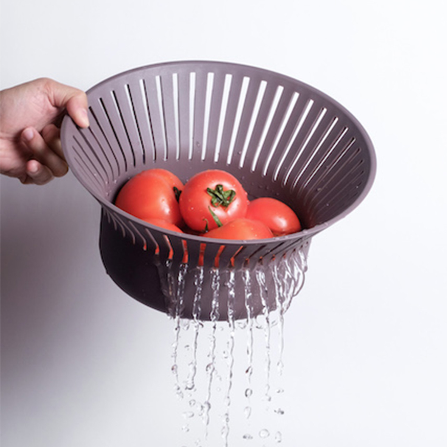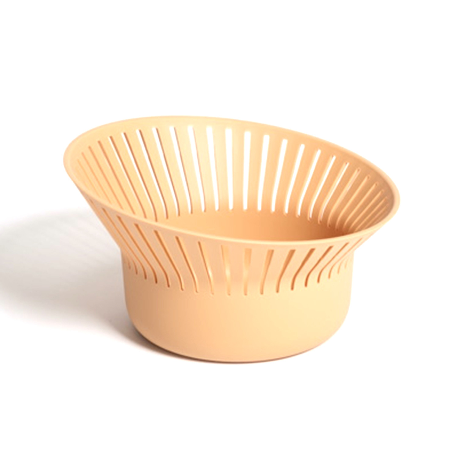 The RUFF bread basket is designed to not only serve bread rolls on table, but also wash fruit and vegetables in kitchen. The basket is higher at one side and lower at the other, allowing to hold breads of different sizes or shapes. The slotted and sloped rim help drain water easily. Simply hold and tilt the basket towards one side, water will be strained out without problem.