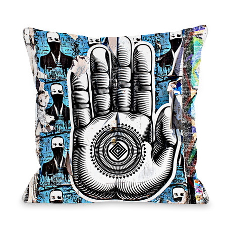 This line of pillows by Daniel Saboni takes inspiration from the gritty and beautiful scenery of the city. From graffiti and murals to warehouses and signage, they let you bring a little bit of moxie to your home. This Hamasa Pillow will add that perfect urbane accent to any space.