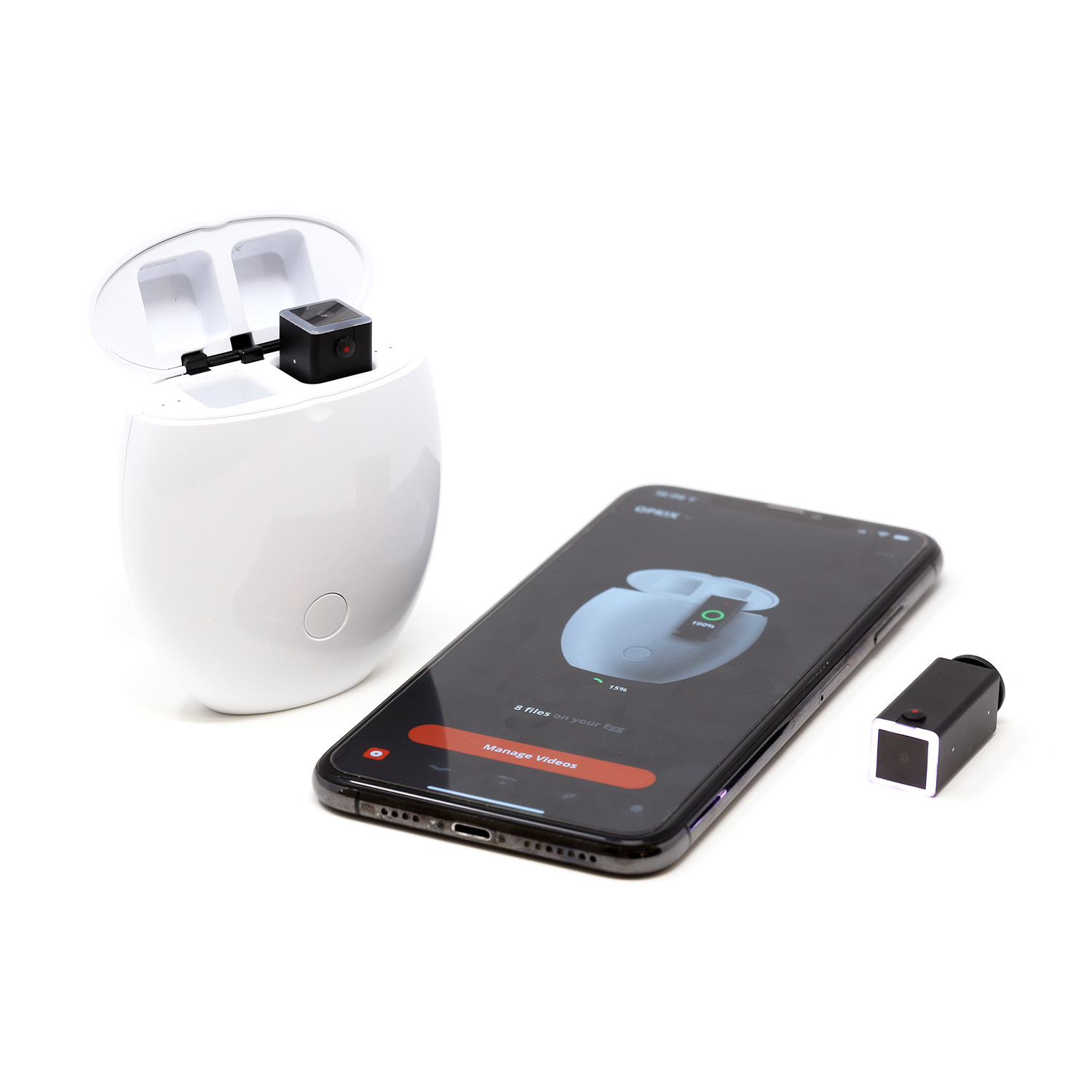 Start recording with a simple push of a button, then wirelessly pair the included Egg storage case to your smartphone to seamlessly transfer all your video content. Once it's transferred, you can manage, edit, and share all your content right form the easy-to-use OPKIX Studio App.