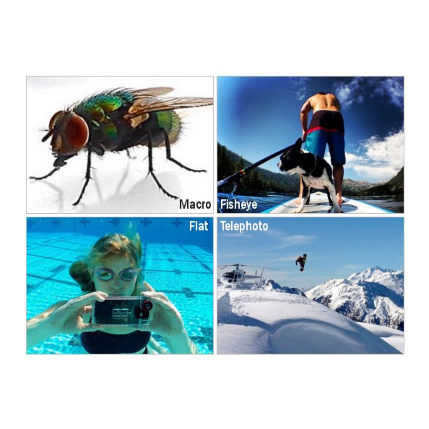 — Macro Lens, Telephoto Lens, FishEye Lens, Flat Lens