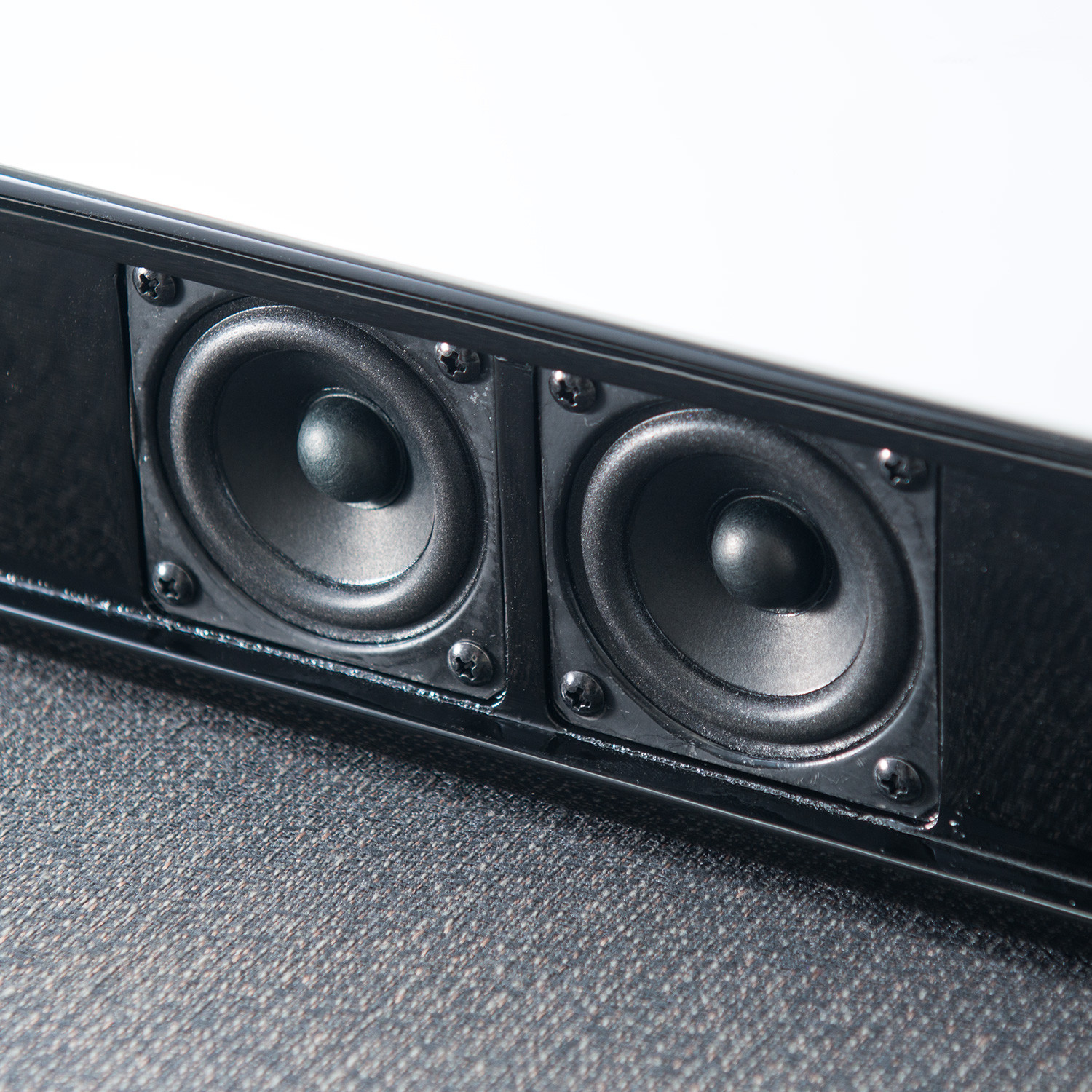The SB60 features more than enough audio power to create a great movie experience. Cables are included to connect to virtually any TV, and the AUX inputs can be used for phones, tablets and Bluetooth receivers, creating a complete home audio system. The SB60 is recommended for use with any flat or curved TV, from 32" to 55". The solid wood base has been designed to support the weights of a TV placed on it, and it comes with interchangeable black or silver face plate.