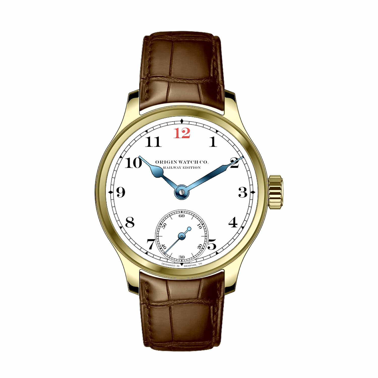 Inspired by the Railroad grade pocket watches of the late 1800s and early 1900s Origin's Railway Edition offers a modern interpretation of the classic Railroad watch. It is simple and clean yet elegant in design, reminiscent of Elgin, Waltham, and Hamilton watches of that era. It is powered by a hand-wound mechanical movement, originally developed in the 1950s for use in pocket watches.