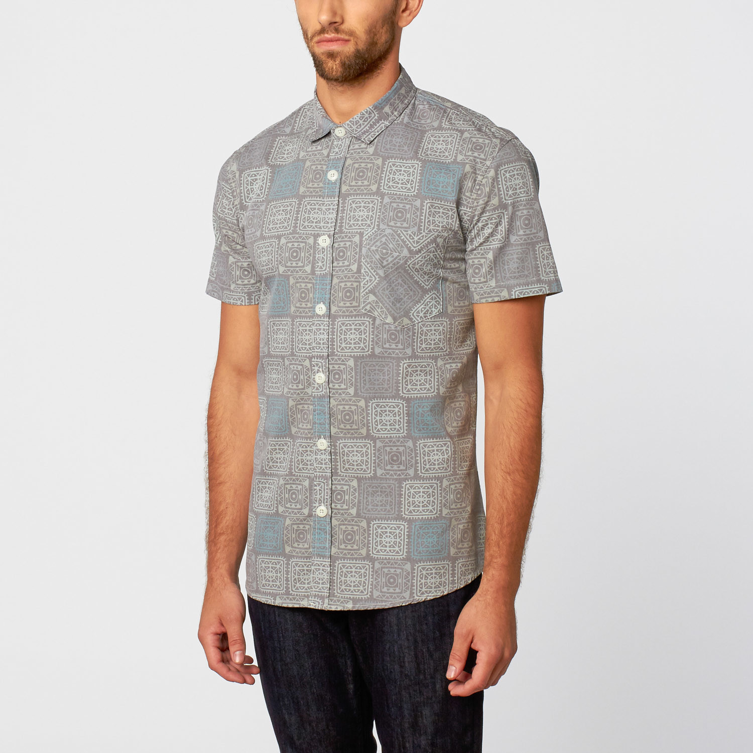 Casual, breezy prints shine center stage in the Milano Short-Sleeve Button-Up. Pair with vibrantly colored shorts for a look that feels as much at ease on an exotic vacation as it does at a backyard barbecue.