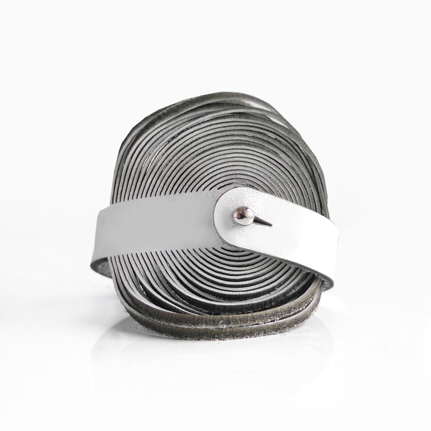 Thin concentric circles shift and rearrange along your wrist as you go about your day when you're wearing the Peel. This kinetic piece features a design of thin circles that meet at the bracelet strap and hang elegantly.