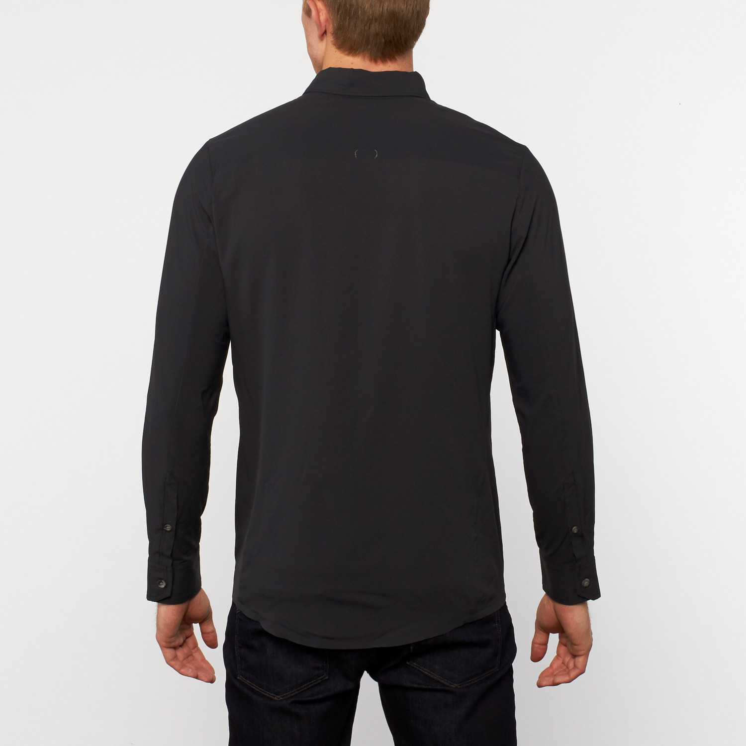 Hand printed in downtown LA, each one of Ortiz's micro-herringbone digital printed shirts is unique. This bio-mechanically woven long sleeve shirt is the perfect pick.