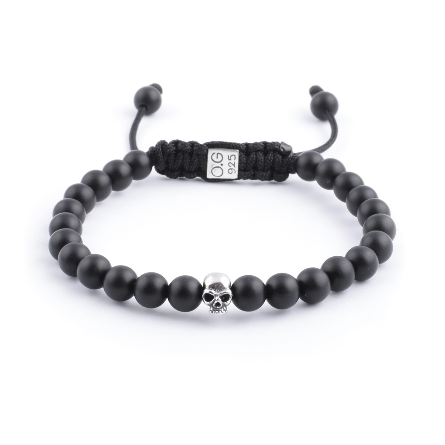 Prized since the times of the ancient Greeks and Romans, onyx has long been a prized material of couture and of kings. This bracelet stars a skull charm in silver, which is set upon a stylish beaded bracelet made from — you guessed it — incredible onyx.