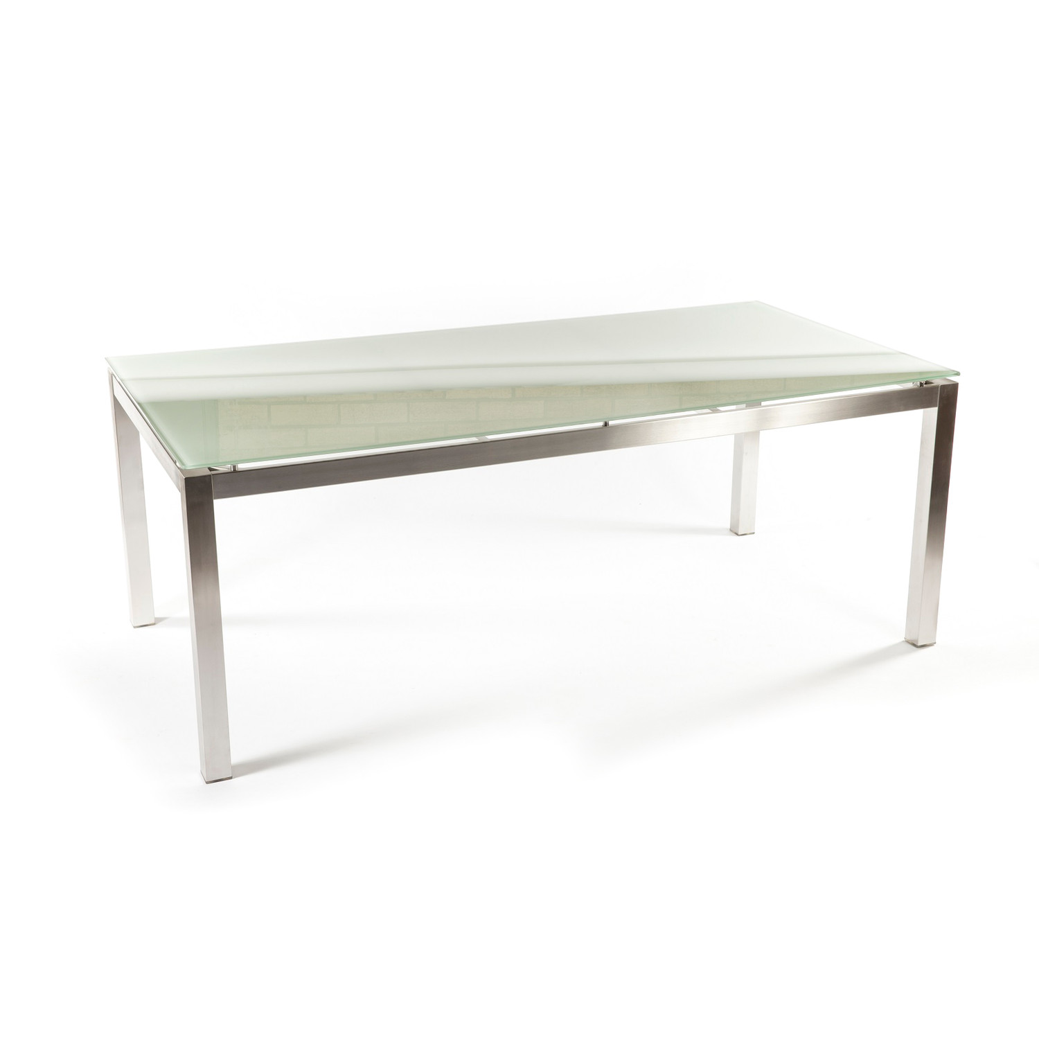 Constructed with stainless steel legs and a beautiful white tempered glass top, the Chalcis Dining Table lends itself nicely to patio dining. It is easy to maintain and provides you with a clean, spacious outdoor table surface.