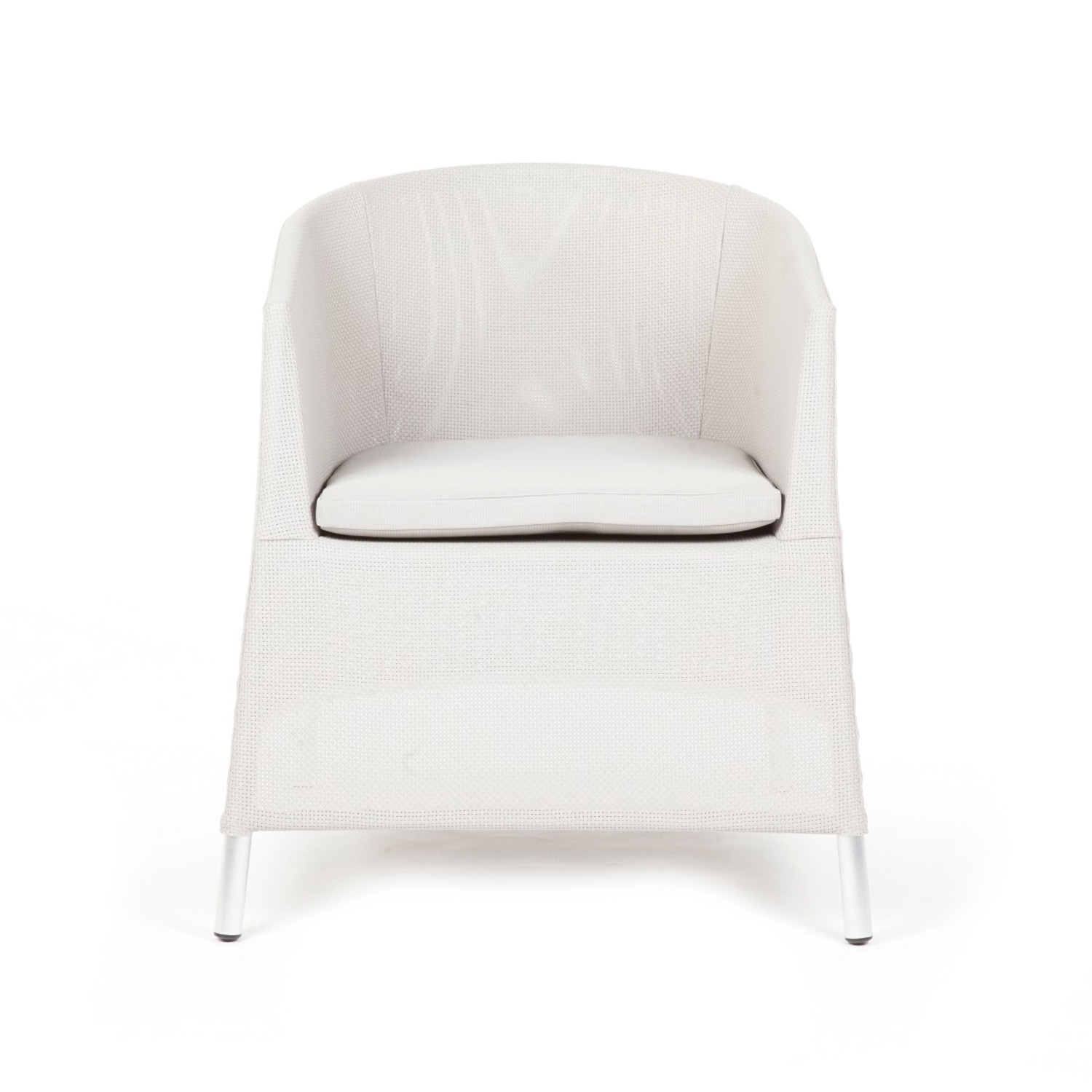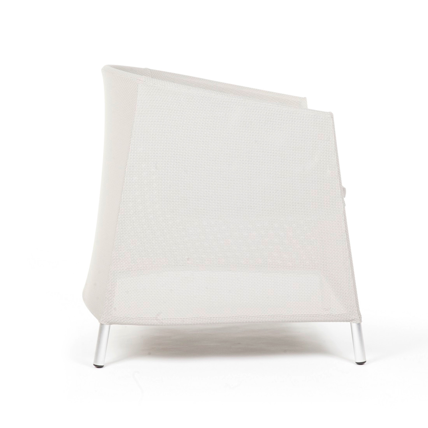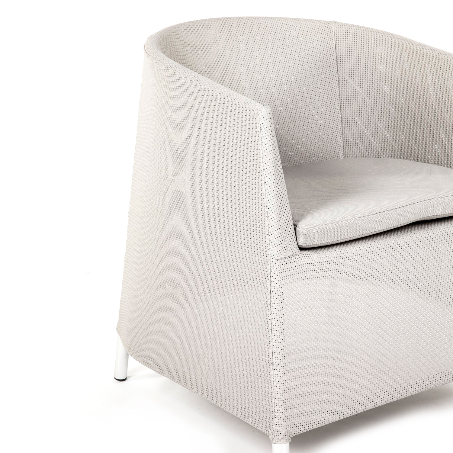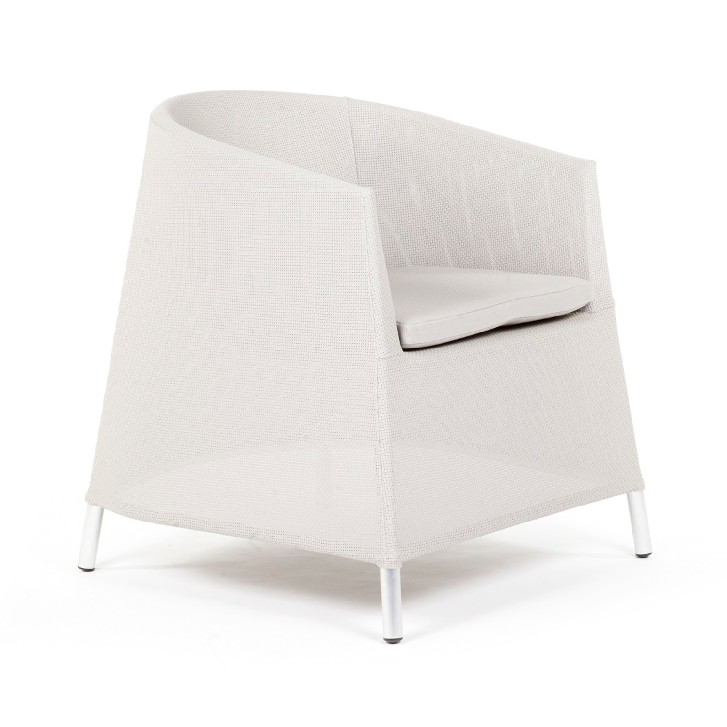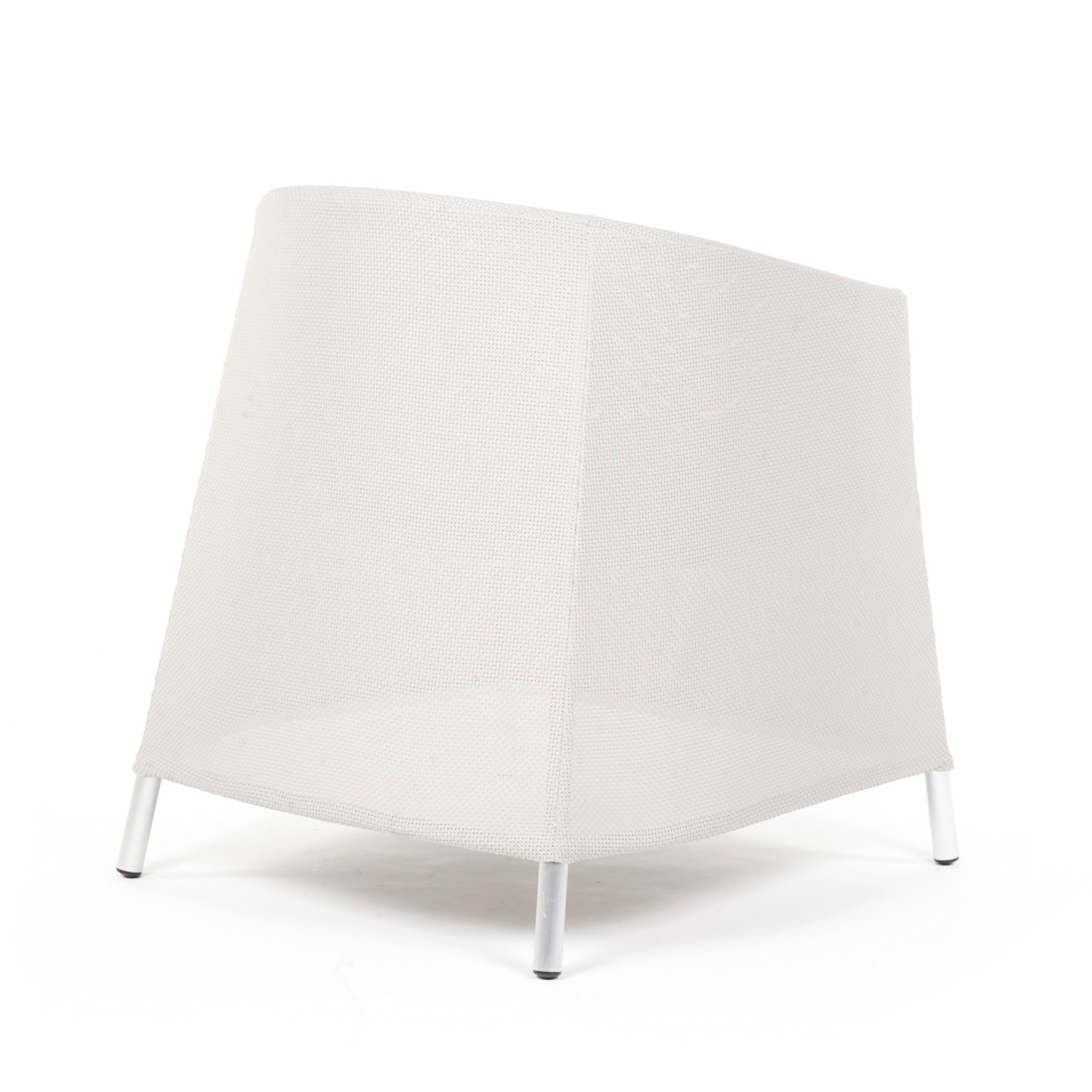 The Kos Arm Chair is crafted with a lightweight, rustproof, powder coated aluminum frame that has a comfortable curve from side to side. The frame slopes gradually from the back along the arms and spreads to form a wider base at the floor. Covered with a composite sling outdoor fabric, the Kos is suitable for both indoor and outdoor use.