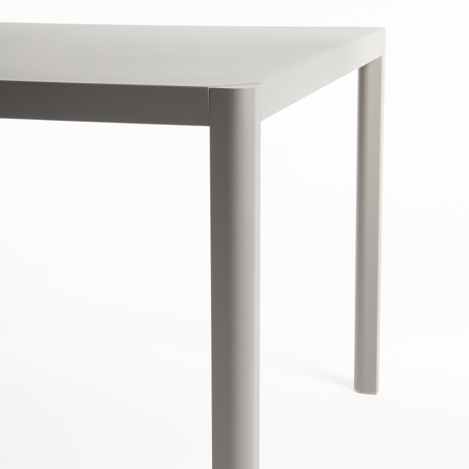 The top and legs of the Schwaz Table are a straightforward, unified grey finish on powder coated aluminum. Functional and strong, this table is good for both indoor and outdoor use.