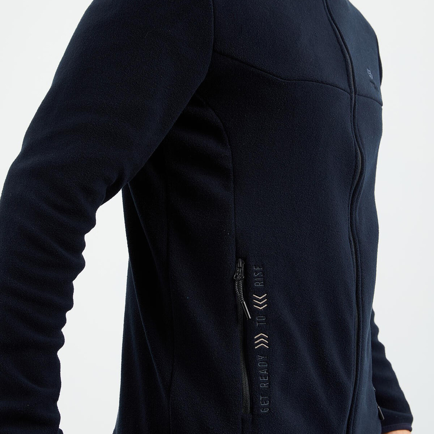 Men's Embroidered Zip-Up Collared Polar Fleece Jacket // Navy Blue (XXL)