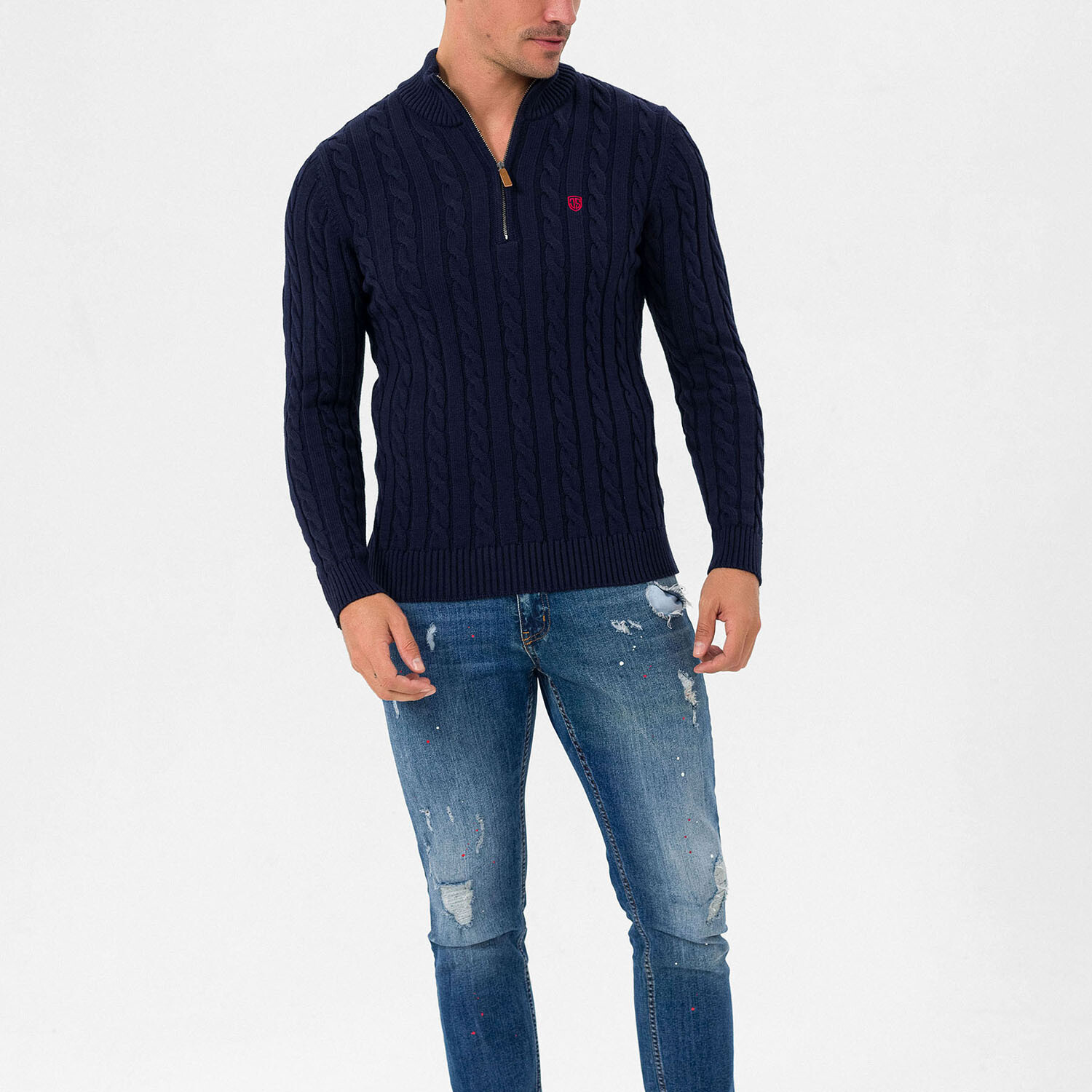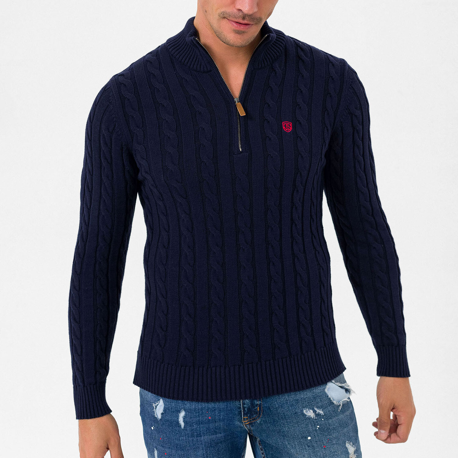 Taziano Half-Zip Cableknit Sweater // Navy (3XL)