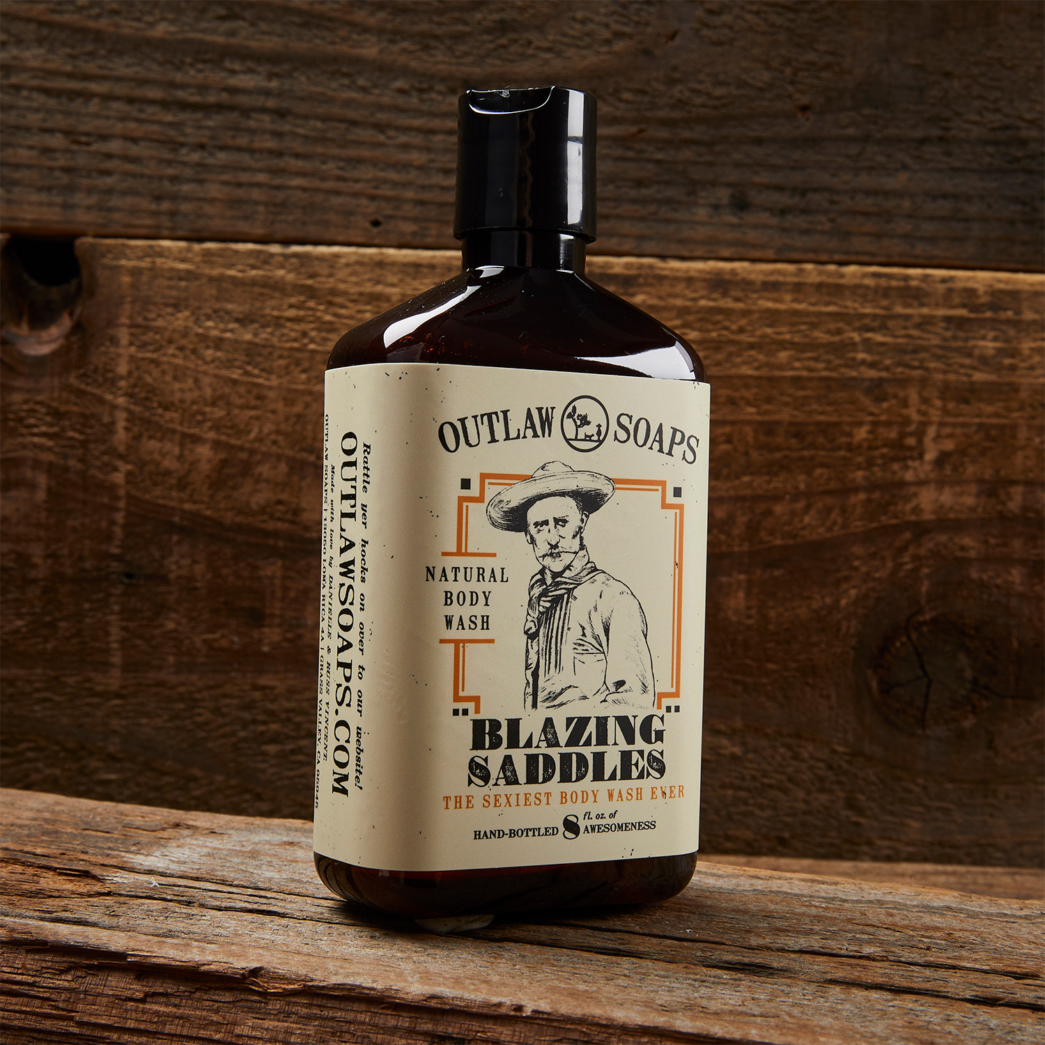 — (1) Blazing Saddles Solid Cologne + (1) Body Wash: Leather, Gunpowder, Sandalwood, + Sagebrush
