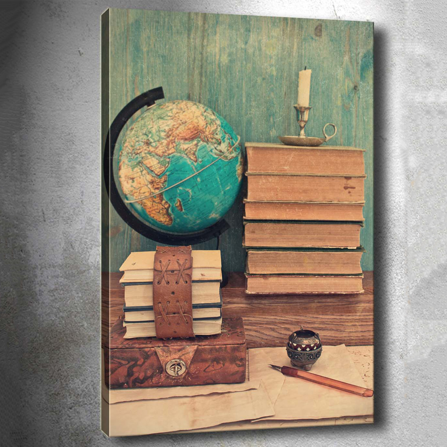 Printed on hand-stretched, specially prepared canvas, this collection of vintage maps features everything from the scattering of ancient civilizations, to artistic images that include parchment scrolls and old mariner's compasses.
