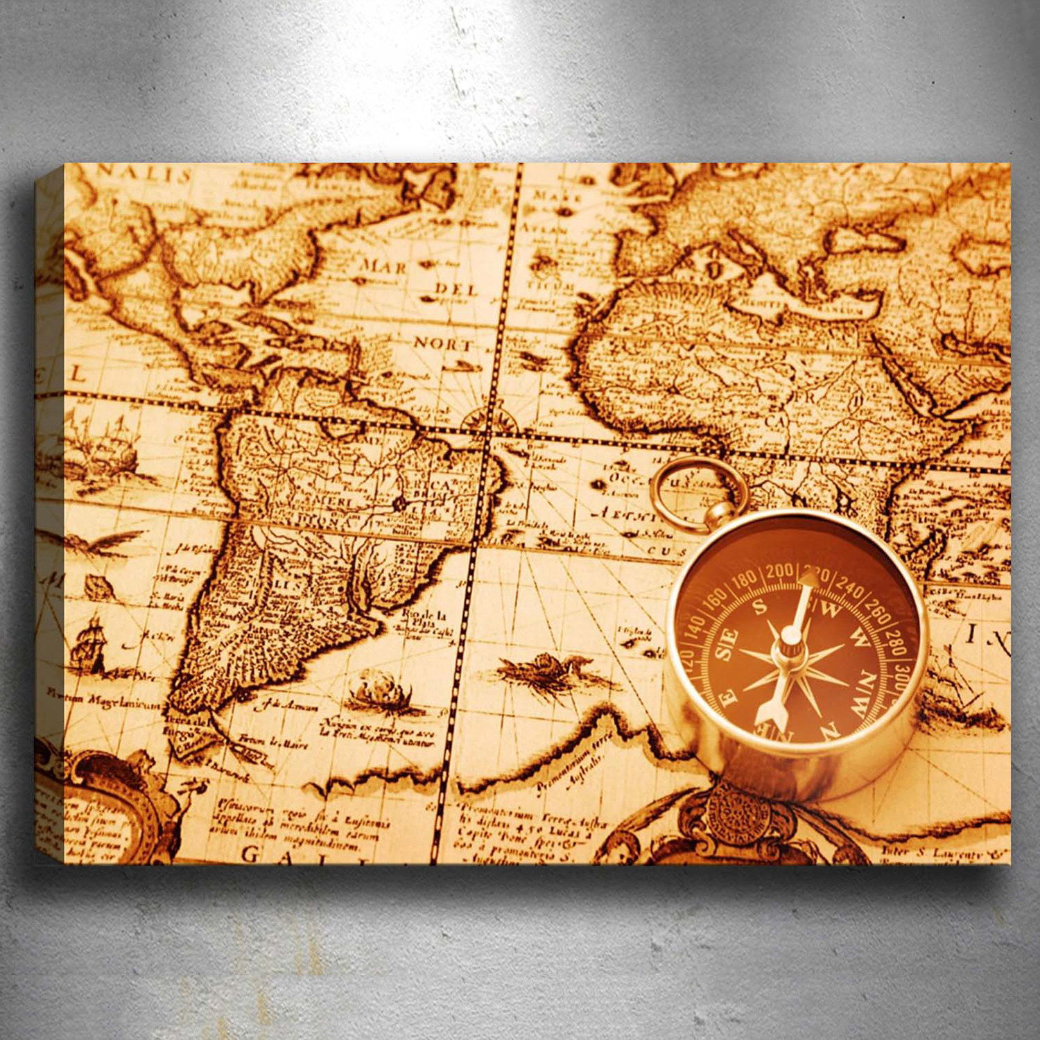 Printed on hand-stretched, specially prepared canvas, this collection of vintage maps features everything from the scattering of ancient civilizations, to artistic images that include parchment scrolls and old mariner's compasses.
