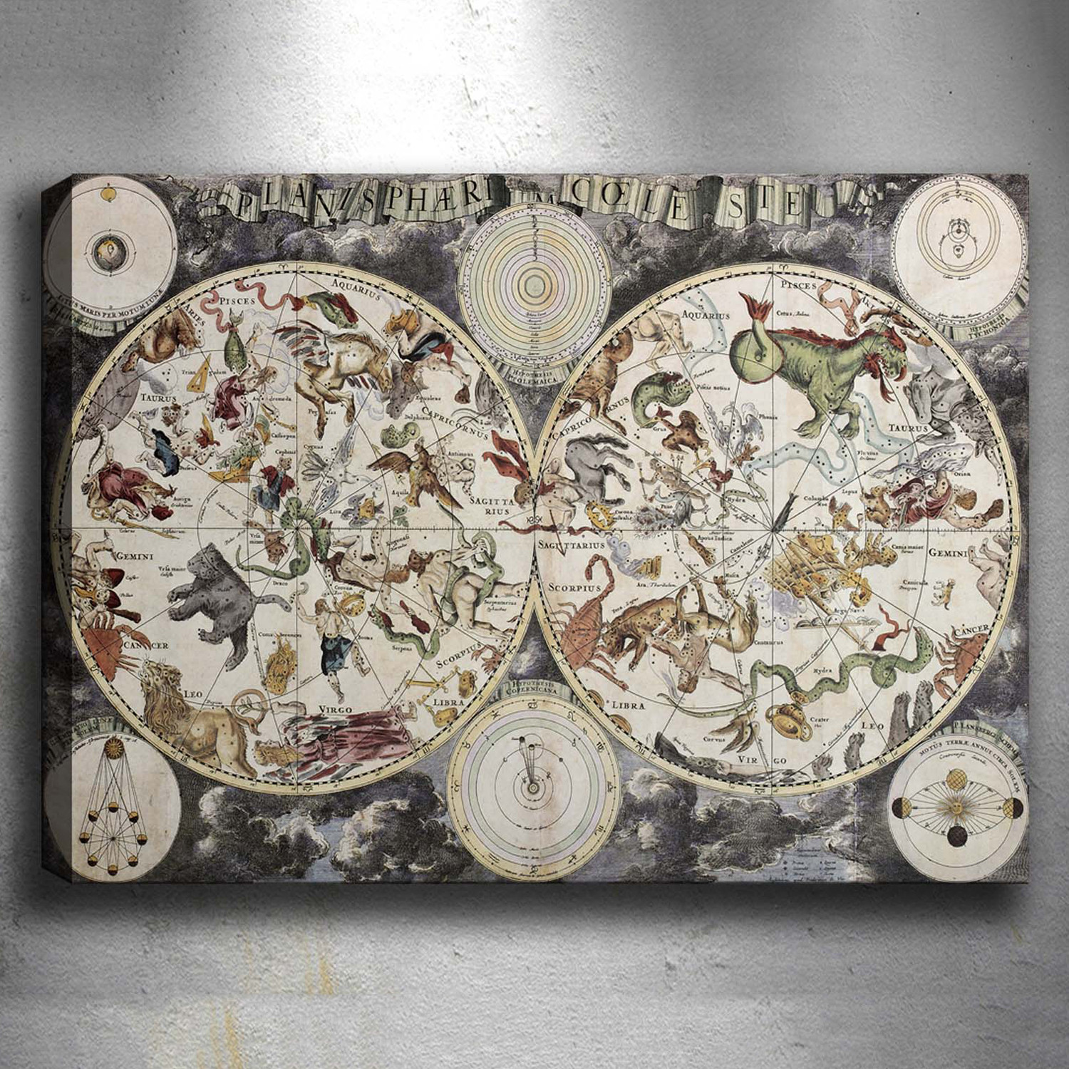Printed on hand-stretched, specially prepared canvas, this collection of vintage maps features everything from the scattering of ancient civilizations, to artistic images that include parchment scrolls and old mariner's compasses.