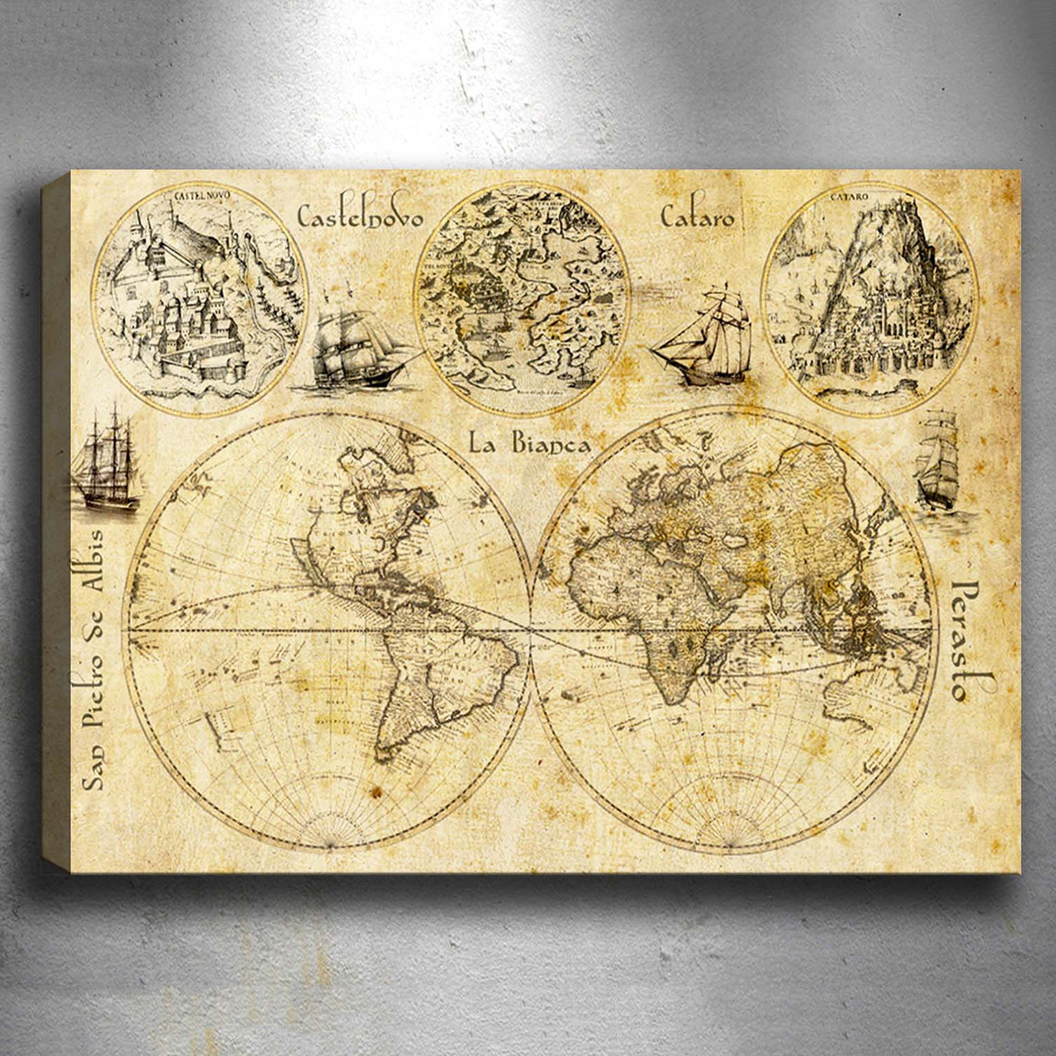 Printed on hand-stretched, specially prepared canvas, this collection of vintage maps features everything from the scattering of ancient civilizations, to artistic images that include parchment scrolls and old mariner's compasses.