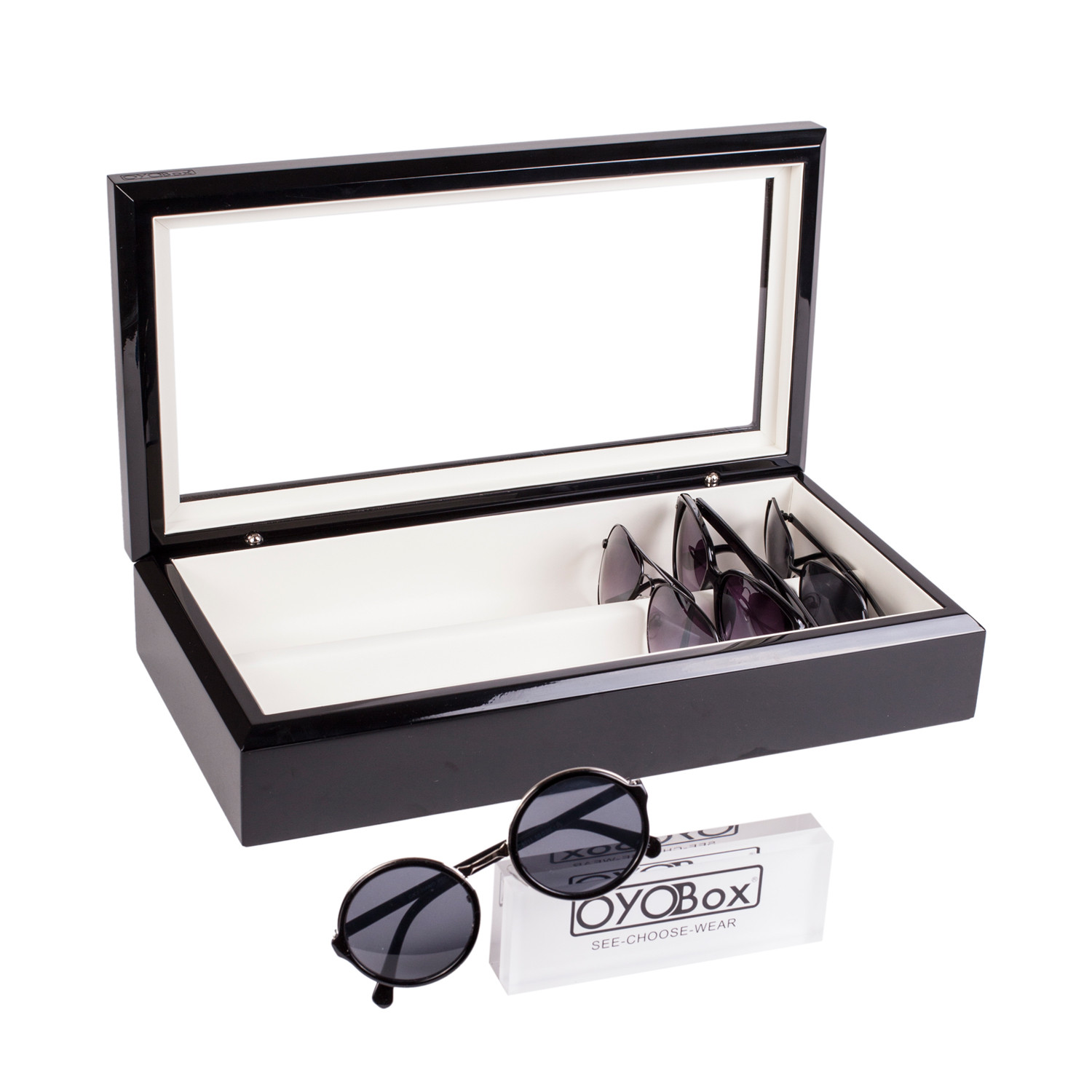 If you're tired of rummaging through dressers and drawers for your frames in the morning, the OYOBox is the perfect luxury eyewear organizer for you. With specially molded partitions, see-through lids and a highly lacquered, sleek frame, this eyewear organization tool is as stylish as it is useful, and can fit your small reading glasses and large aviators with ease.