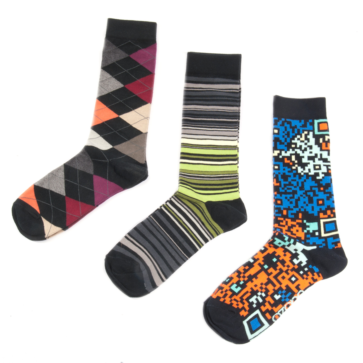 This sleek men's sock set comes with three pairs of vibrant patterns. Step right up in style with these bright and comfortable calf-high footies.