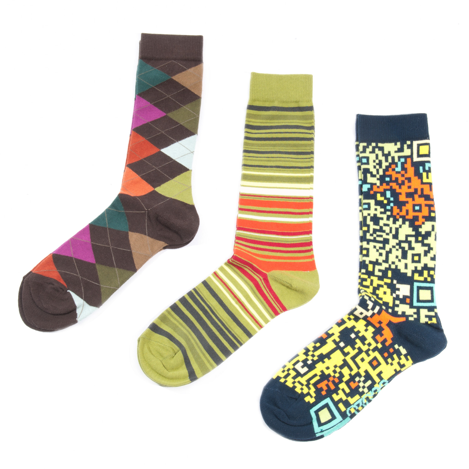 This sleek men's sock set comes with three pairs of vibrant patterns. Step right up in style with these bright and comfortable calf-high footies.