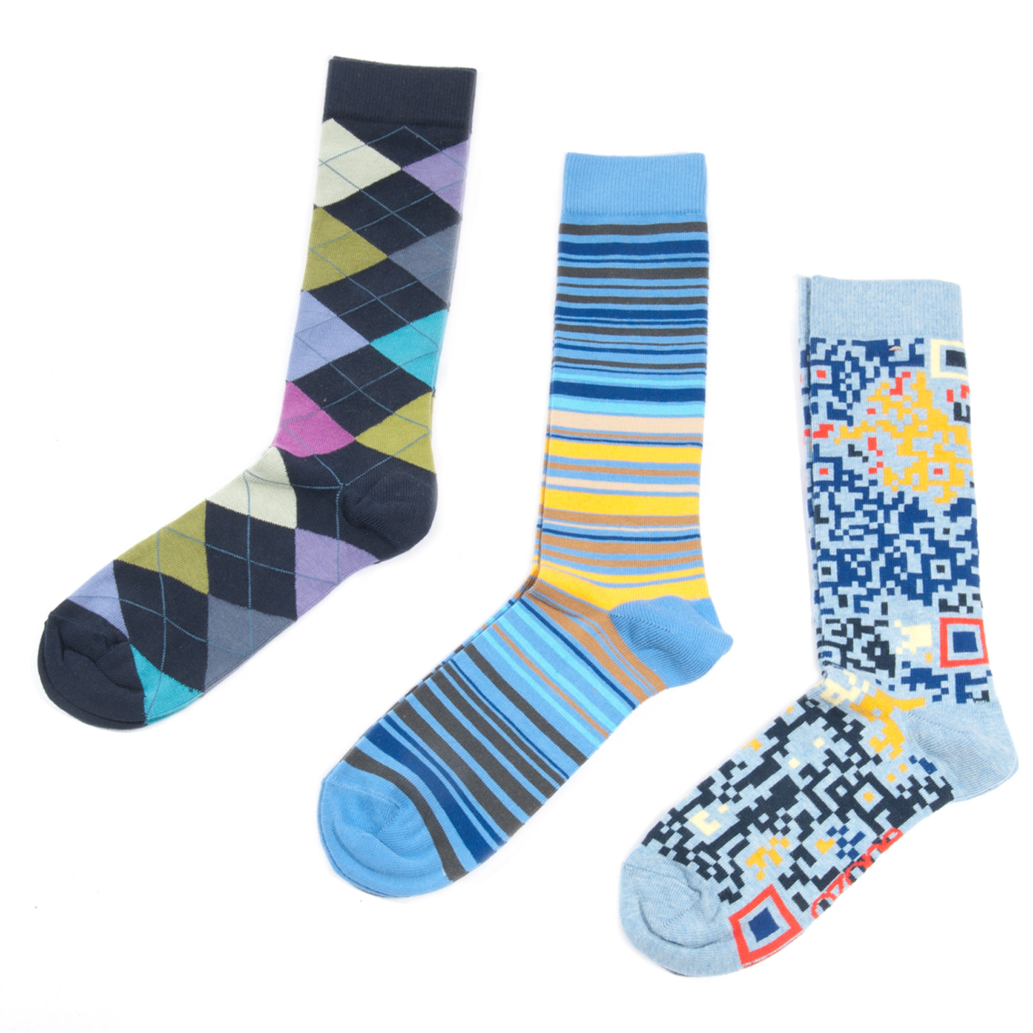 This sleek men's sock set comes with three pairs of vibrant patterns. Step right up in style with these bright and comfortable calf-high footies.
