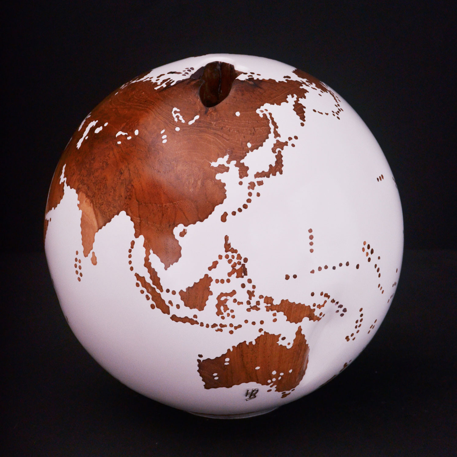 Medium Globe 18 // Classic White Stone + Teak Medium // 9.8"Ø