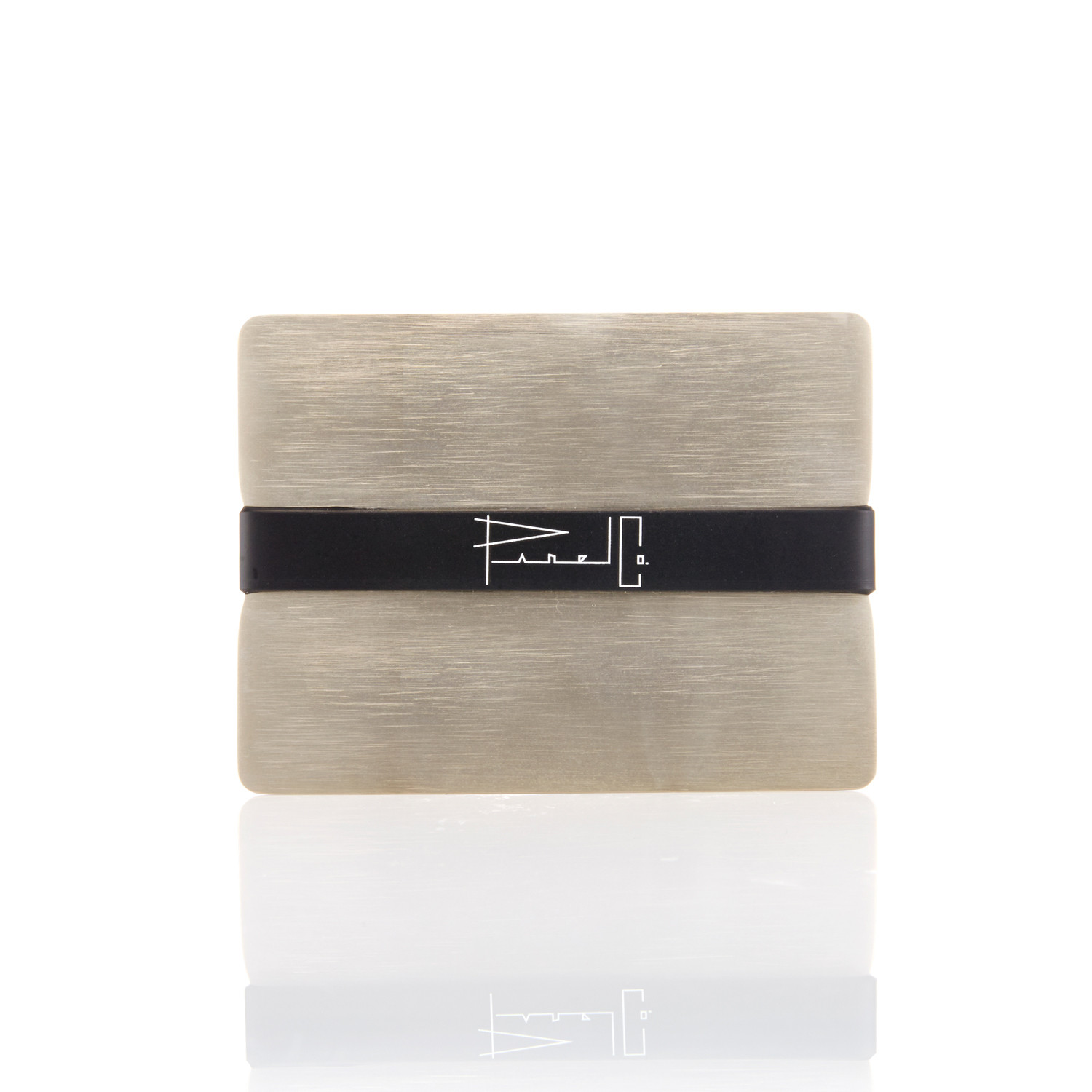 The Panel Wallet embodies the type of high design and functionality Ben thinks consumers deserve. Relying on similar ideals to those found in the Special Operations community, Ben designed Panels to have the smallest and lightest possible form that would provide maximum functionality while supporting bi-folded bills, as well as standard banking and identification cards. The materials Ben chose at the core of each Panel (aluminum and titanium) are passive RFID blocking, which provide another layer of functionality to their users. Each of the finishes Ben selected provides a high quality aesthetic, while the smooth notches and outer edges minimize wear on your garments and silicone bands. Ben also took the time to custom engineer the silicone bands to provide maximum durability and firmly secure your essentials, both on your Panel and in your pocket.