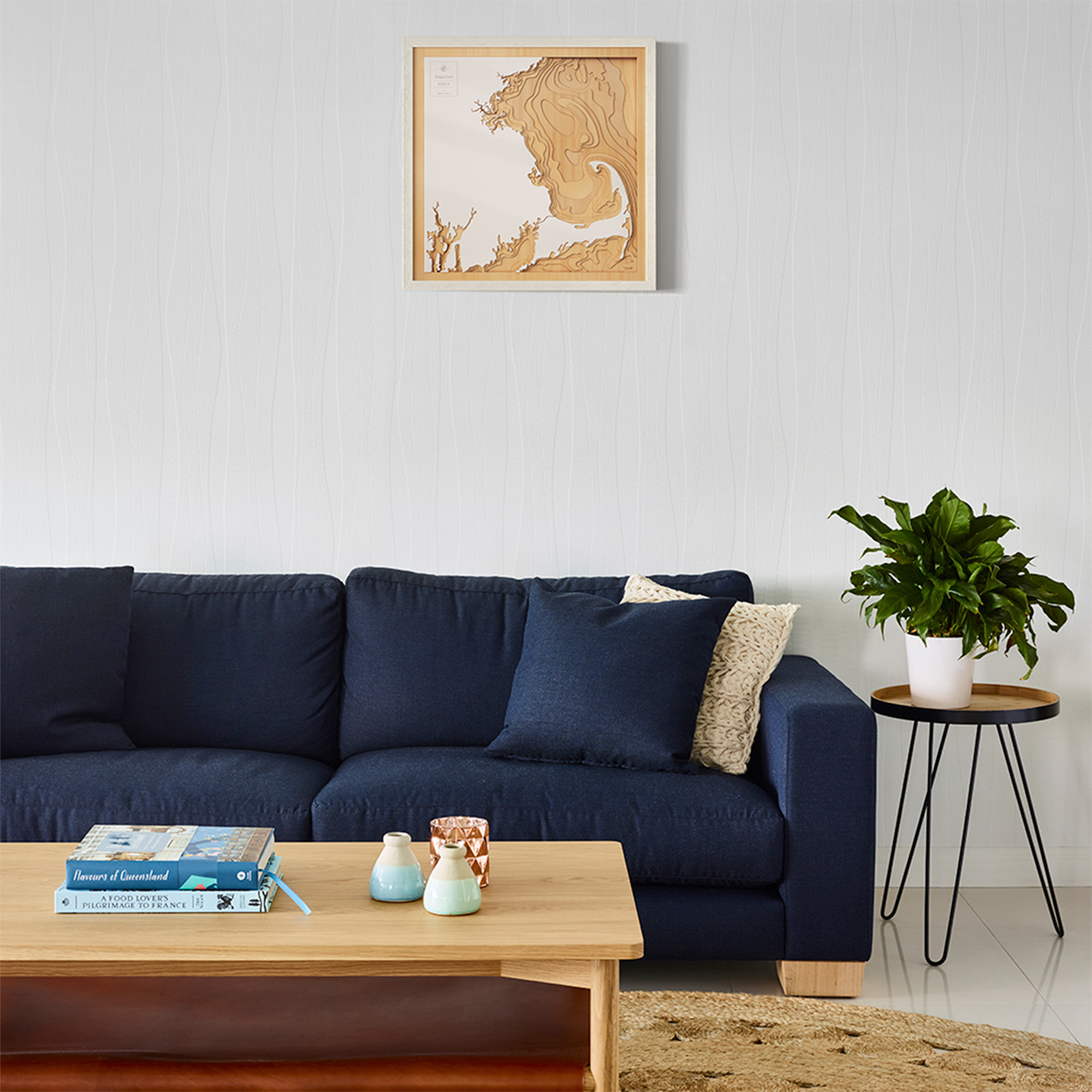 This hyper-detailed 3D wooden contour map features the city and surrounding waters of Cape Cod. It's handmade from 12 layers of 1/16" plywood, and each layer represents water depth. Because every map is made by hand, each one features it's own unique wood grain and authentic human touch, so no two will ever look exactly alike.