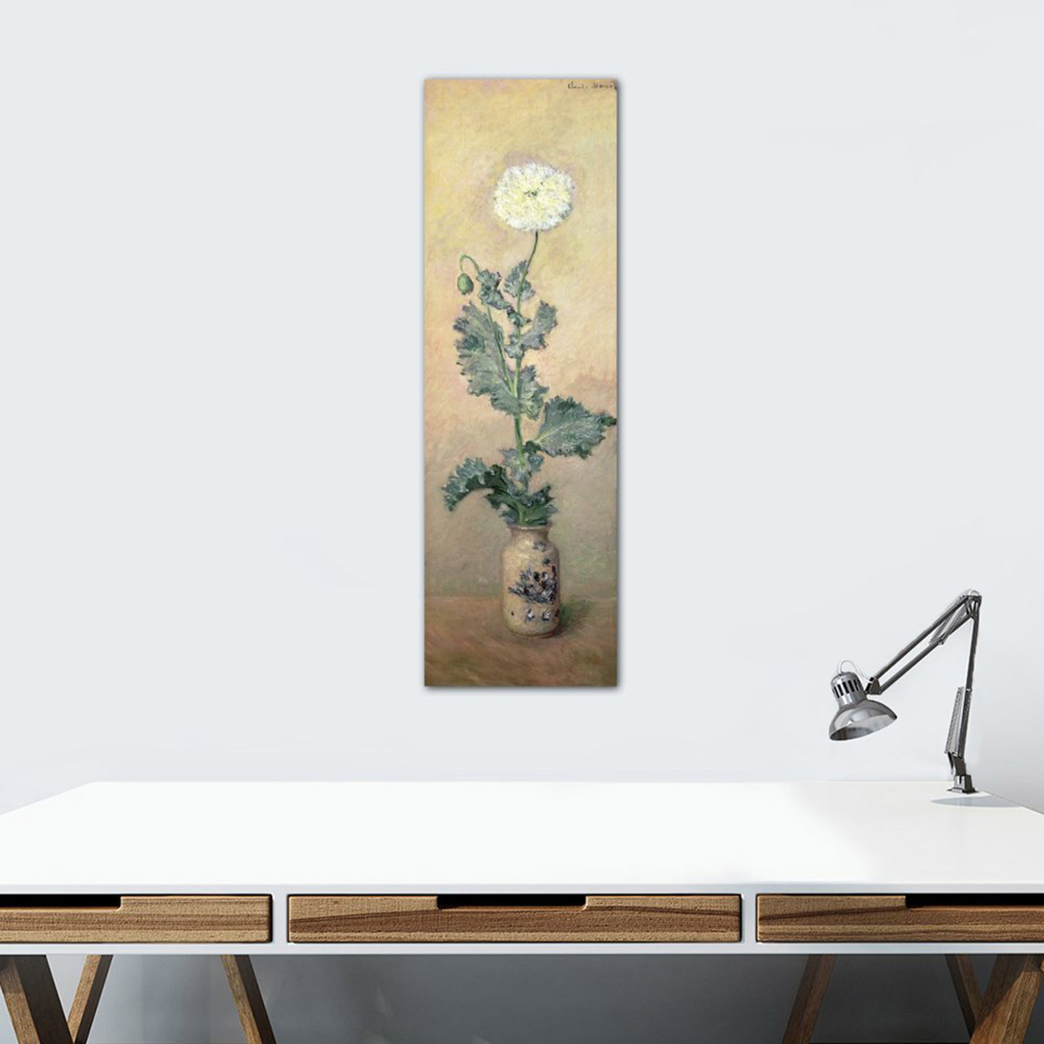 Claude Monet (1840-1926) was the founder and one of the most consistently unwavering practitioners of the French Impressionist movement. He was known for his series of oil paintings, that often depicted the same subject (usually the French countryside) multiple times, from different perspectives and in different lighting. In 1899, he began painting the water lilies on his estate, first in vertical views with a Japanese bridge as a central feature, and later in a famous series of large-scale paintings that would continue for the next 20 years of his life.