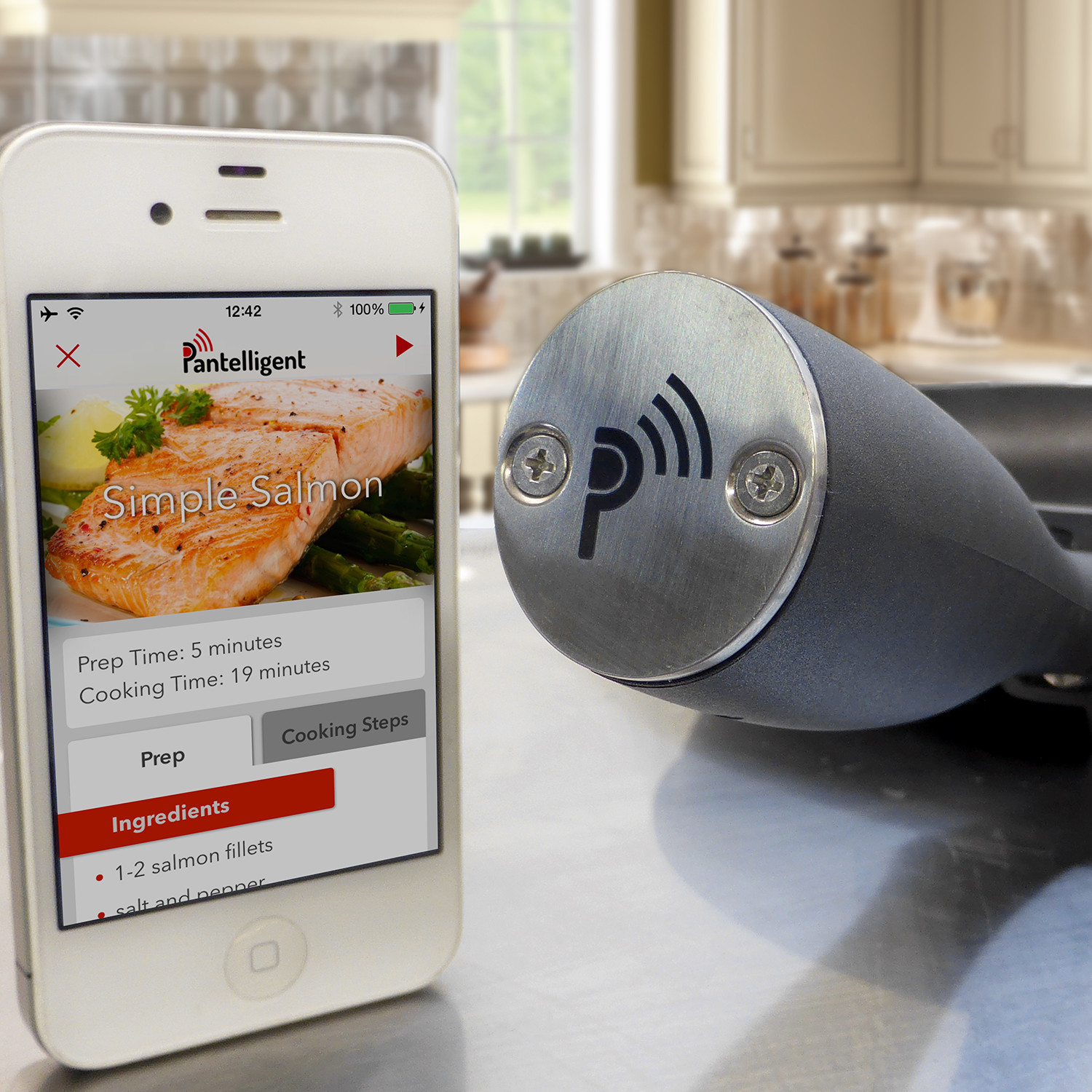 Frying pans have barely changed in thousands of years, but Pantelligent is the next evolutionary leap in the kitchen: a frying pan that actually helps you cook. Pantelligent has a temperature sensor inside it that communicates with the Pantelligent smartphone app. Together, the pan and the app guide you to cook everything perfectly, just the way a professional chef (or your mom!) would cook it. No more overcooked, undercooked, or burned food. You’ll know exactly when the pan is at the right temperature, when it's time to flip or stir, and when your food is perfectly done.