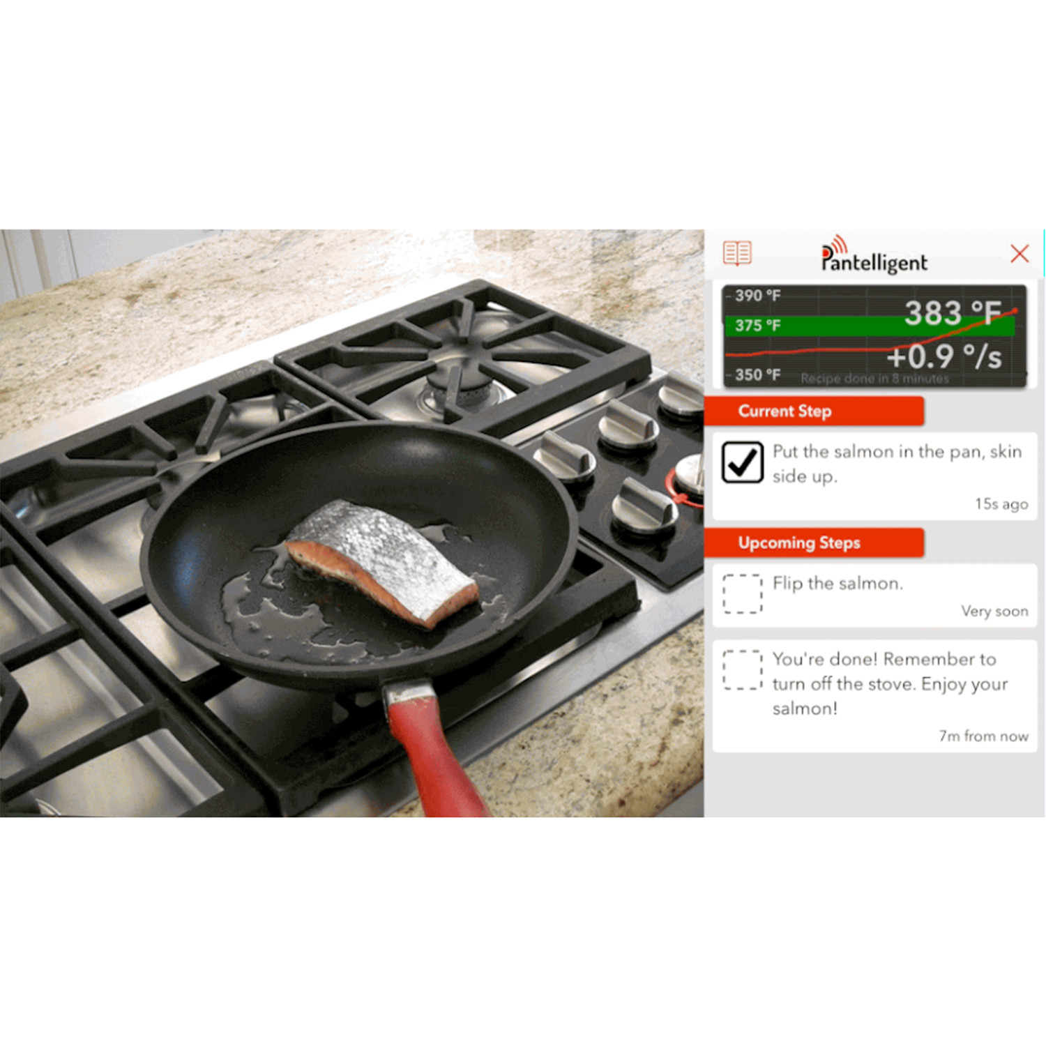 Pantelligent makes everything you can make in a frying pan, because it is a frying pan -- only smarter. The frying pan is the workhorse of the kitchen. Walk into any commercial kitchen and you’ll find multiple stations with multiple pans on burners. Pantelligent helps you cook anything you can cook with a regular frying pan, only smarter, and perfect every time. Pantelligent already comes with dozens of recipes all meticulously crafted for Pantelligent by our chefs. These special recipes go beyond a normal recipe by including time and temperature profiles that its app uses to guide you to perfect results.