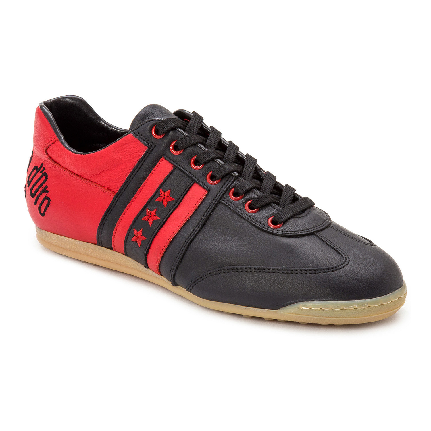 Embroidered Stripe Leather Lace-Up Sneaker // Red + Black