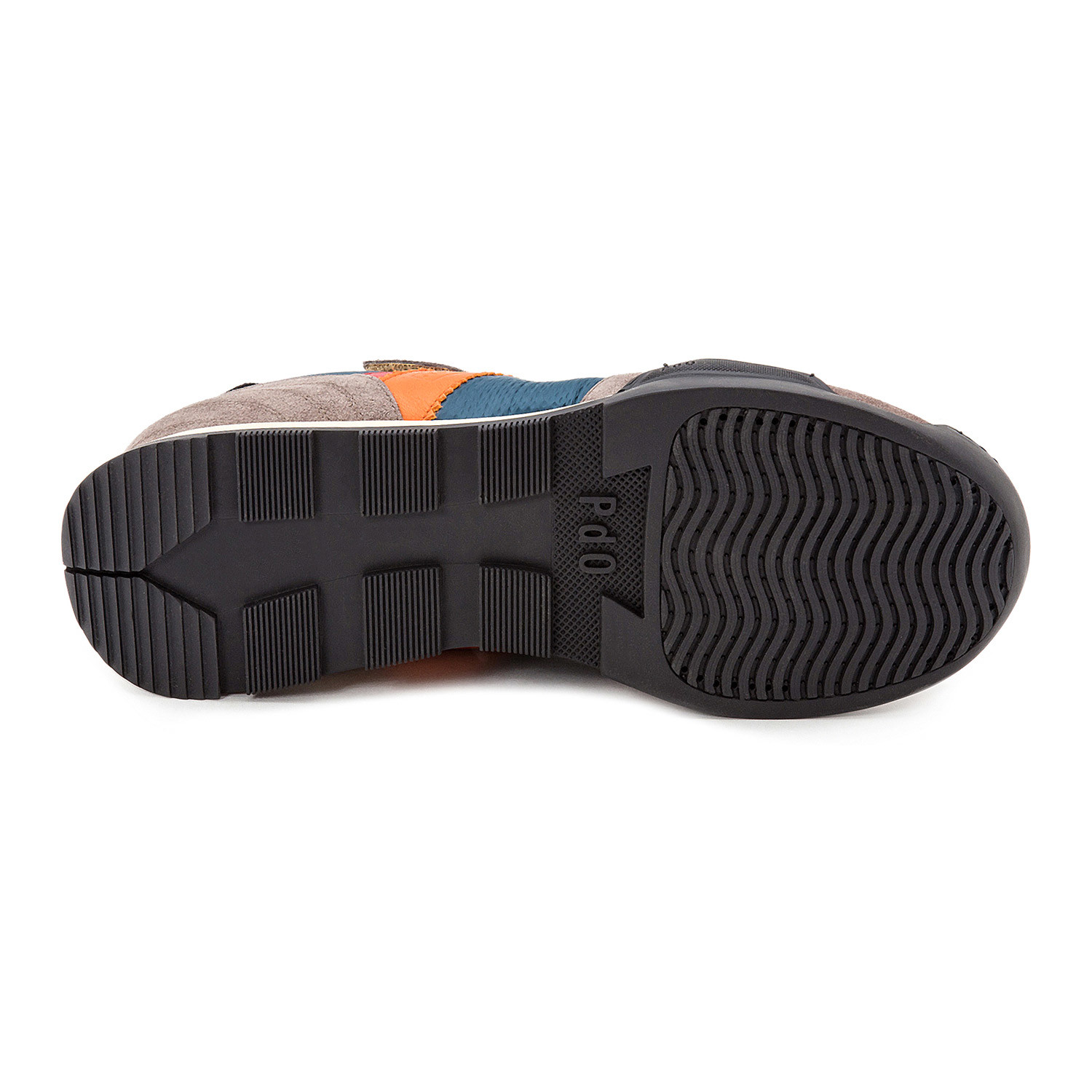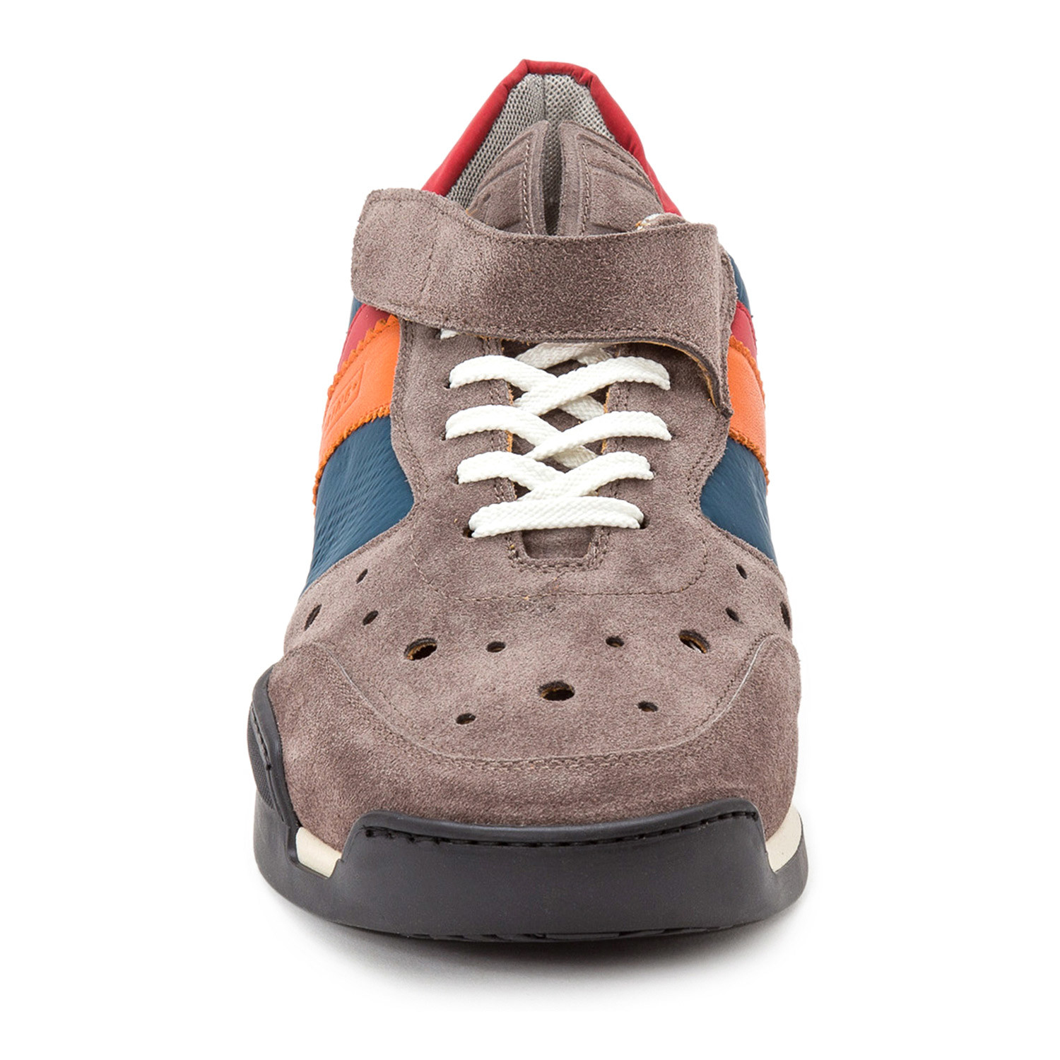 Strapped Colorblock Perforated Mixed Leather Sneaker // Taupe + Teal + Orange + Red
