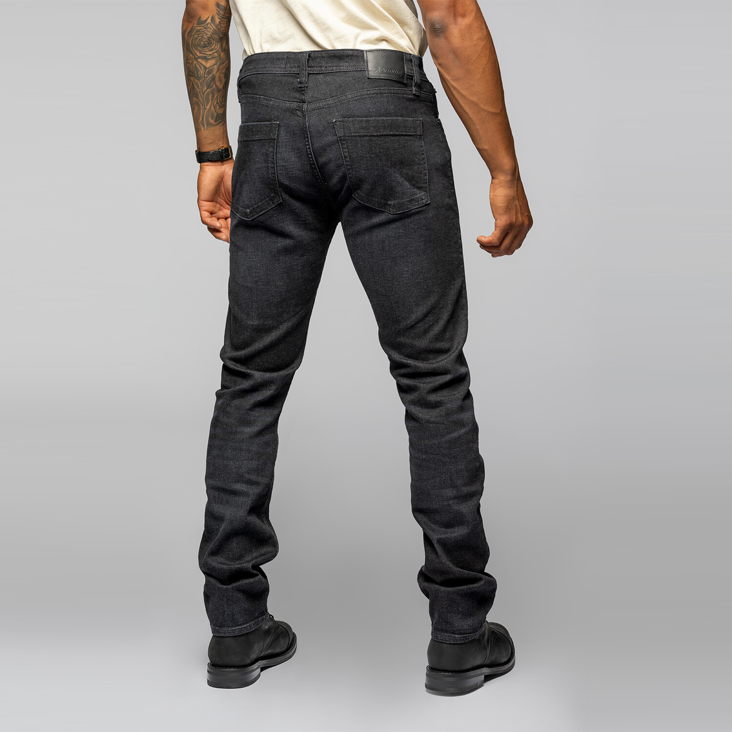 The Sharp Jean is Revtown's best selling, regular fit jean. It’s a classic, easy going fit makes it perfect for every day wear & every occasion. Signature Decade Denim is at the heart of Revtown. The iconic fabric you love, with an innovative twist. It’s a proprietary blend that combines premium Italian-milled denim, a little bit of stretch and a strong, durable thread- just like the stuff used in football uniforms and workout gear. This athletic stretch allows for even bigger guys to wear the correct size and look… well, Sharp! The Sharp has a 15” leg opening & an 11” front rise. Coal Black has a rich texture, is super soft, and really comfortable compared to other black jeans that can feel rigid or stiff.