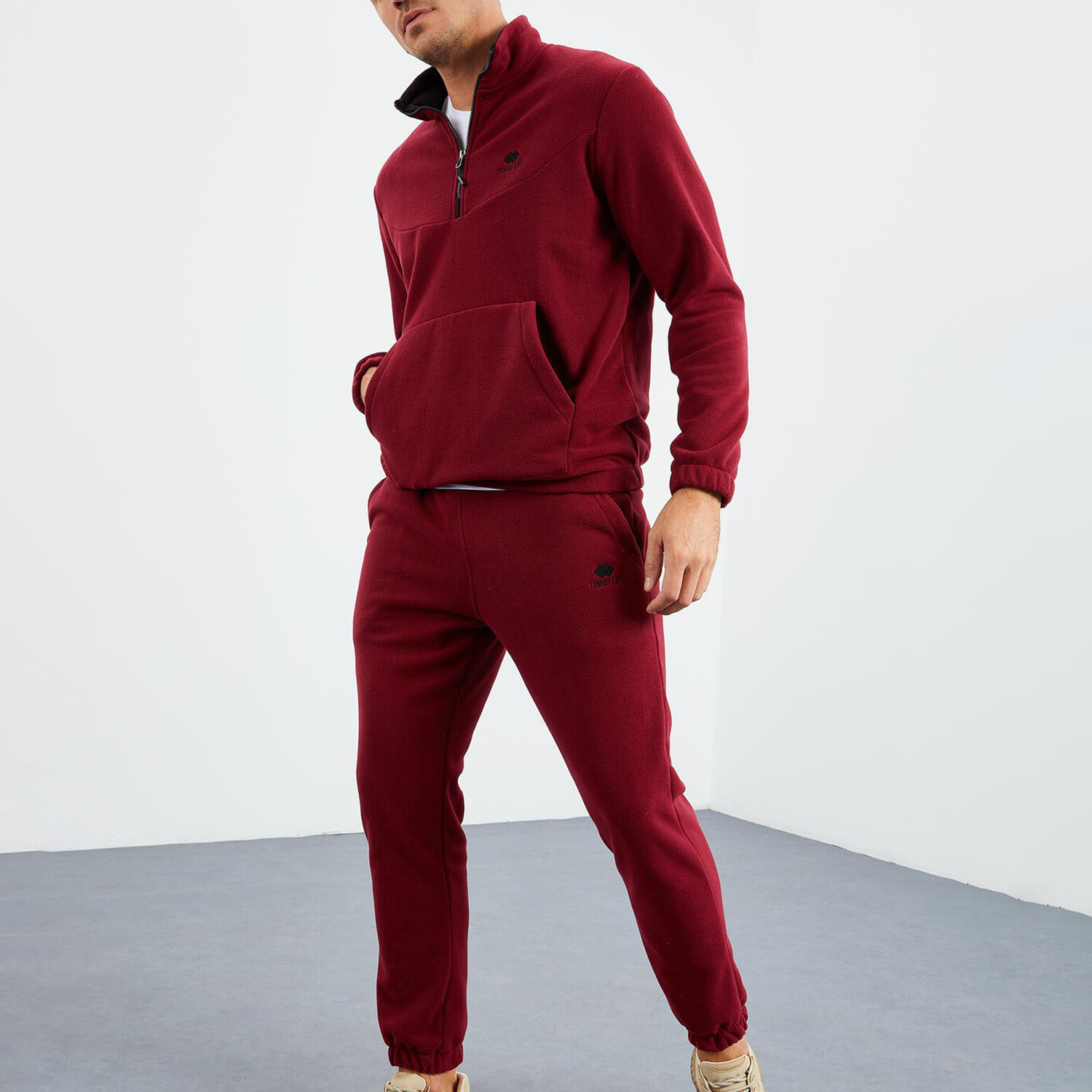 Men's Half-Zip Pullover + Jogger Polar Fleece Tracksuit Set // Burgundy (M)