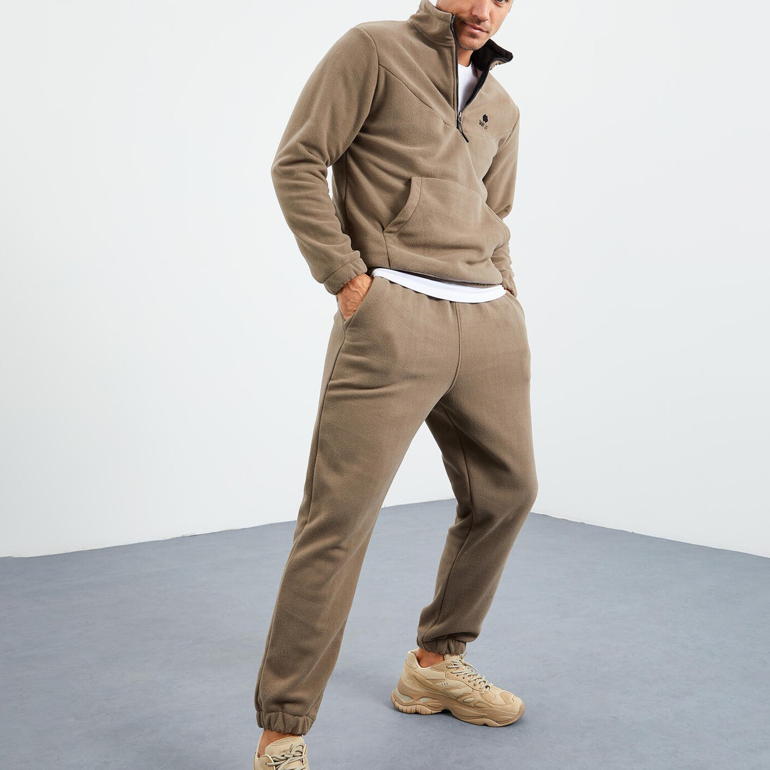 Men's Half-Zip Pullover + Jogger Polar Fleece Tracksuit Set // Camel (XL)