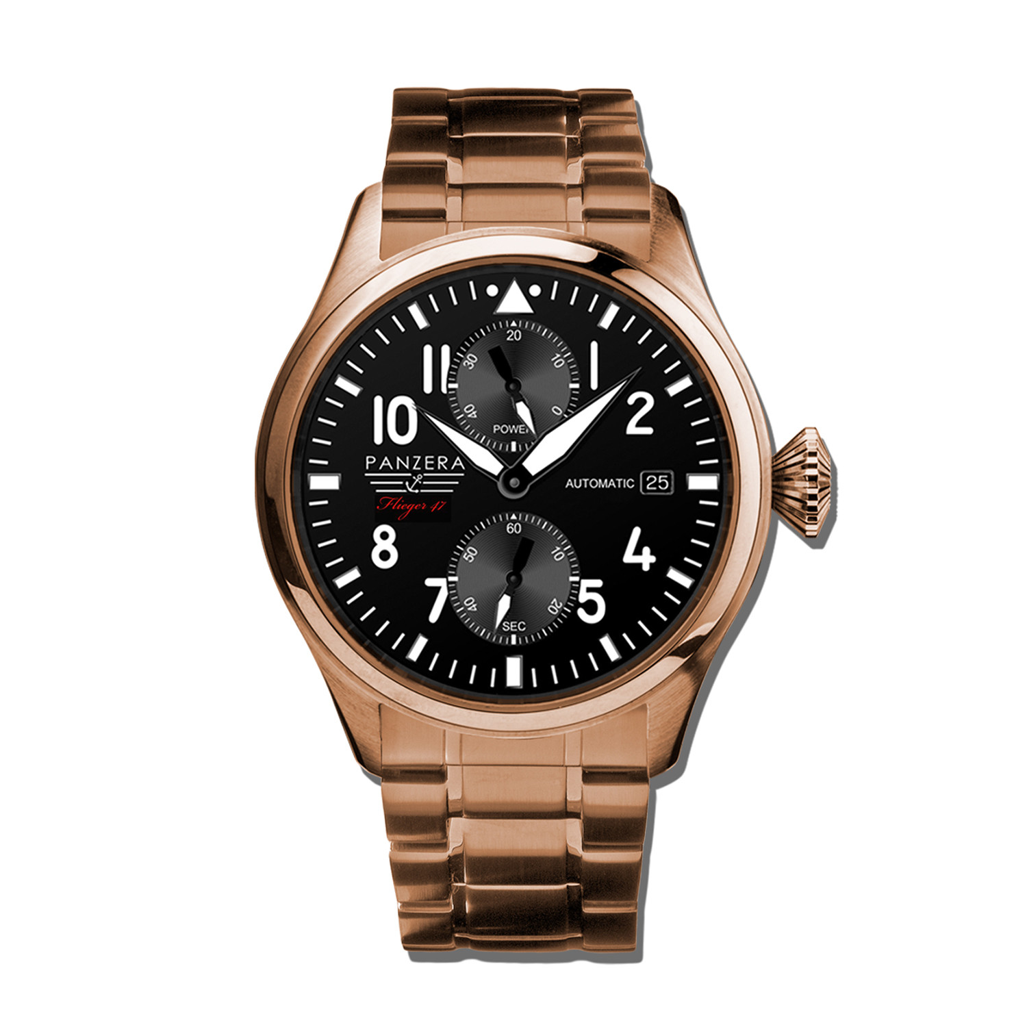 The Panzera Flieger F47-07DM Argus is a classic German 47mm automatic pilots watch. This classic design, with its exhibition caseback, screw down crown and mineral crystal, is as relevant and functional today is it was over 70 years ago, and remains popular with pilots, aviators and aviation fans around the world.