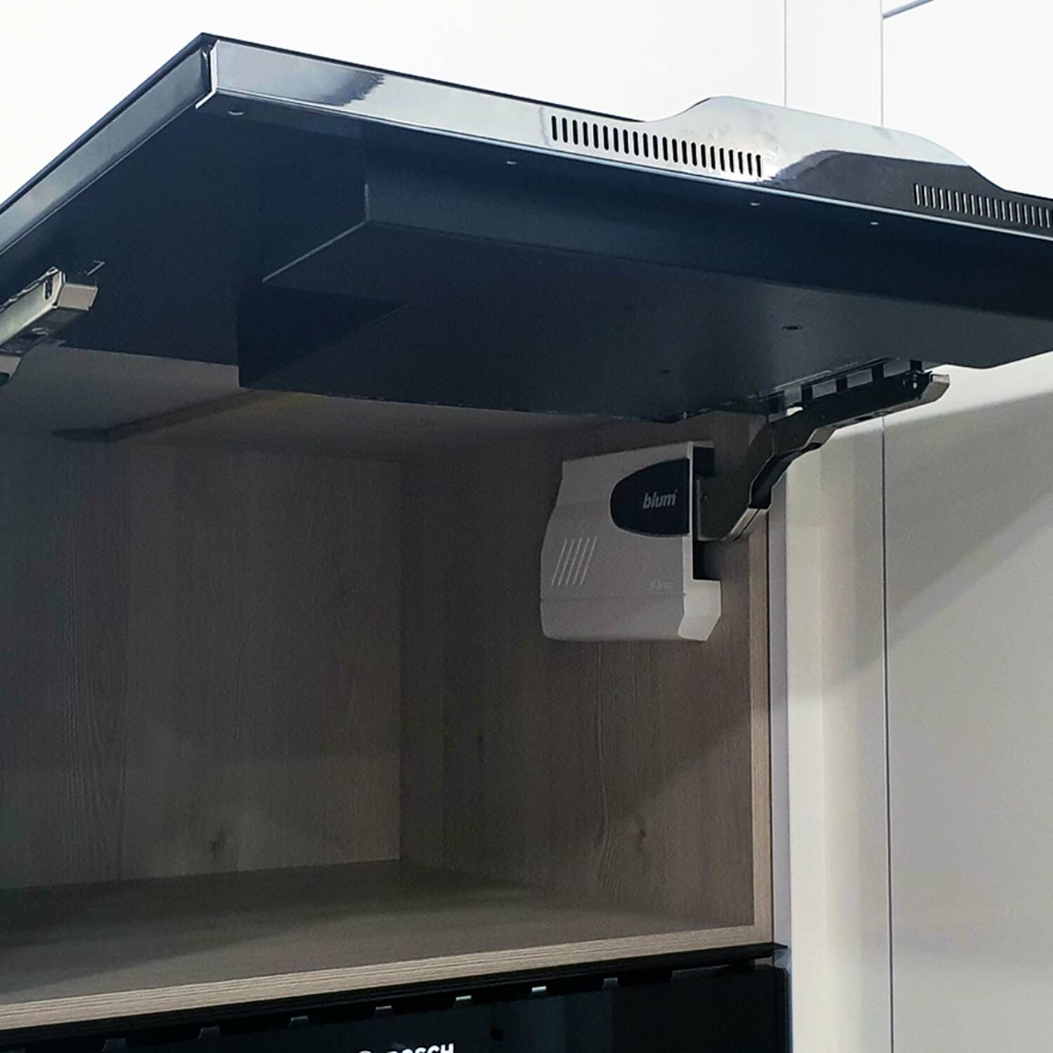 This cabinet lift mechanism allows kitchen cabinet televisions to function as cabinet doors, opening smoothly from the bottom up. While a lift system is required for full functionality, this model is just one compatible option. Most standard cabinet door lift systems will work, offering flexibility during installation. The DTC Top Stay SF New Push lifting mechanism is specifically well suited for integrating compatible AVS kitchen TVs while preserving full use of the cabinet space behind the screen.
