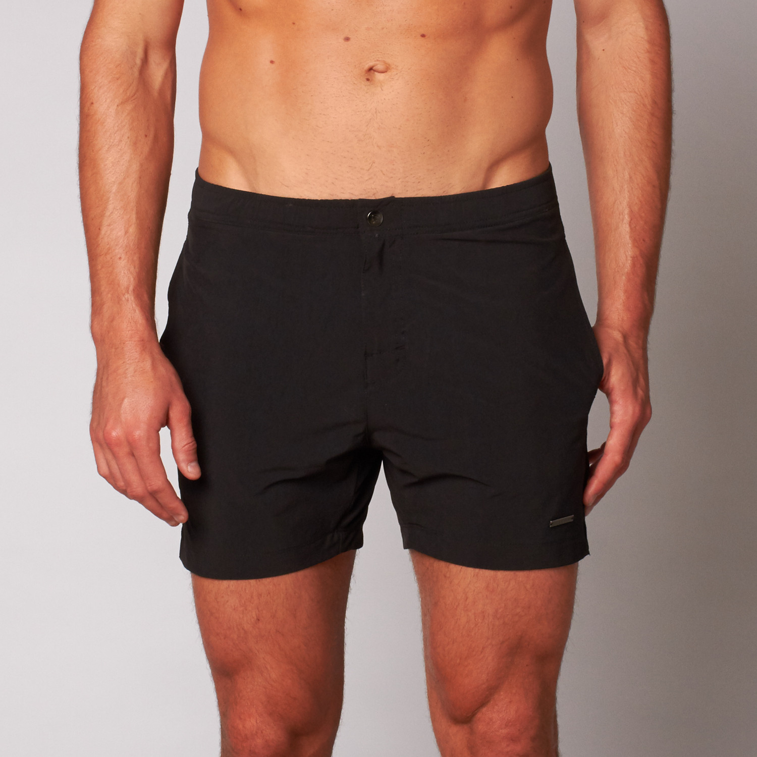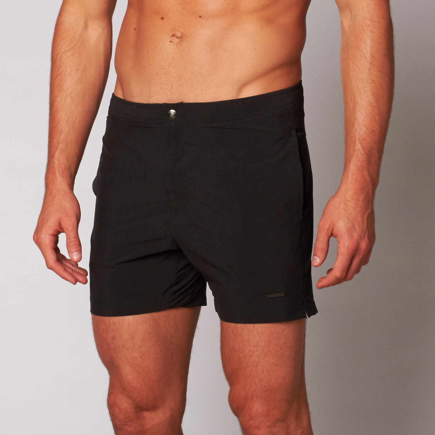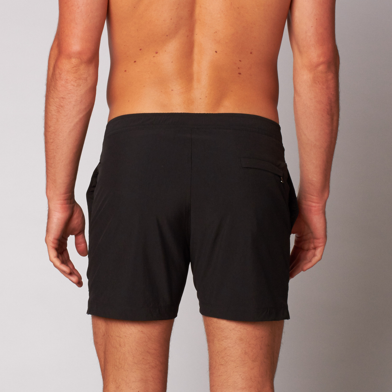 This comfy Naples stretch swim trunk features a snap closure with logo, internal drawstrings, side pockets, zipped back pocket, low-rise and a full mesh lining. The Naples Swim Short has all the comfort you'll need in a stylishly relaxed cut with a 5 inch inseam.