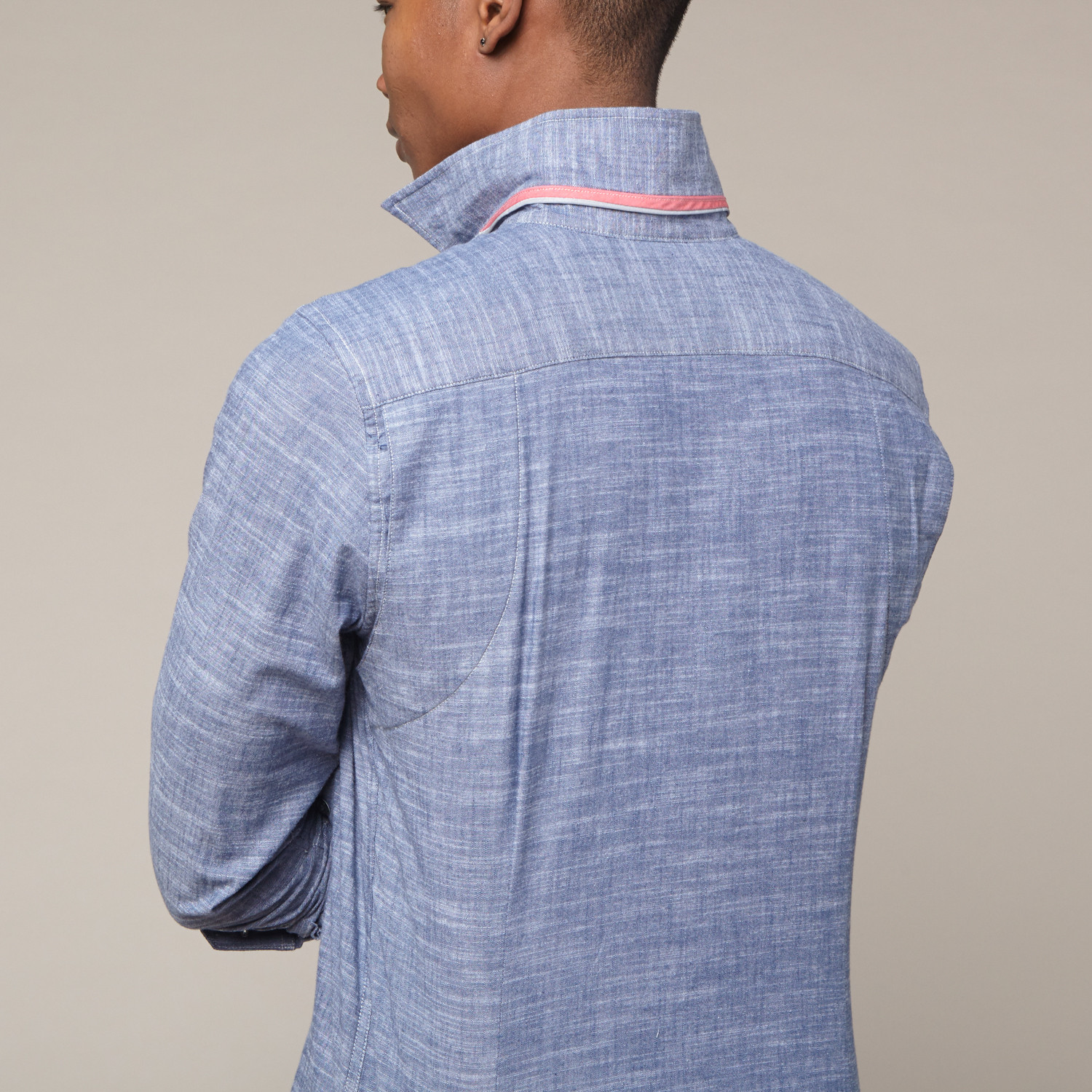 This Chambray Worker Shirt in Indigo is tailored to be perfect for the office, but is designed to give you a large range of movement. It effortlessly combines classic detailing like double button-flap pockets and pearlescent buttons, with sportswear innovations like Powermesh™ shoulder vents and reflective trim. Whether you're biking down the street or owning the boardroom, this shirt has you covered in style.