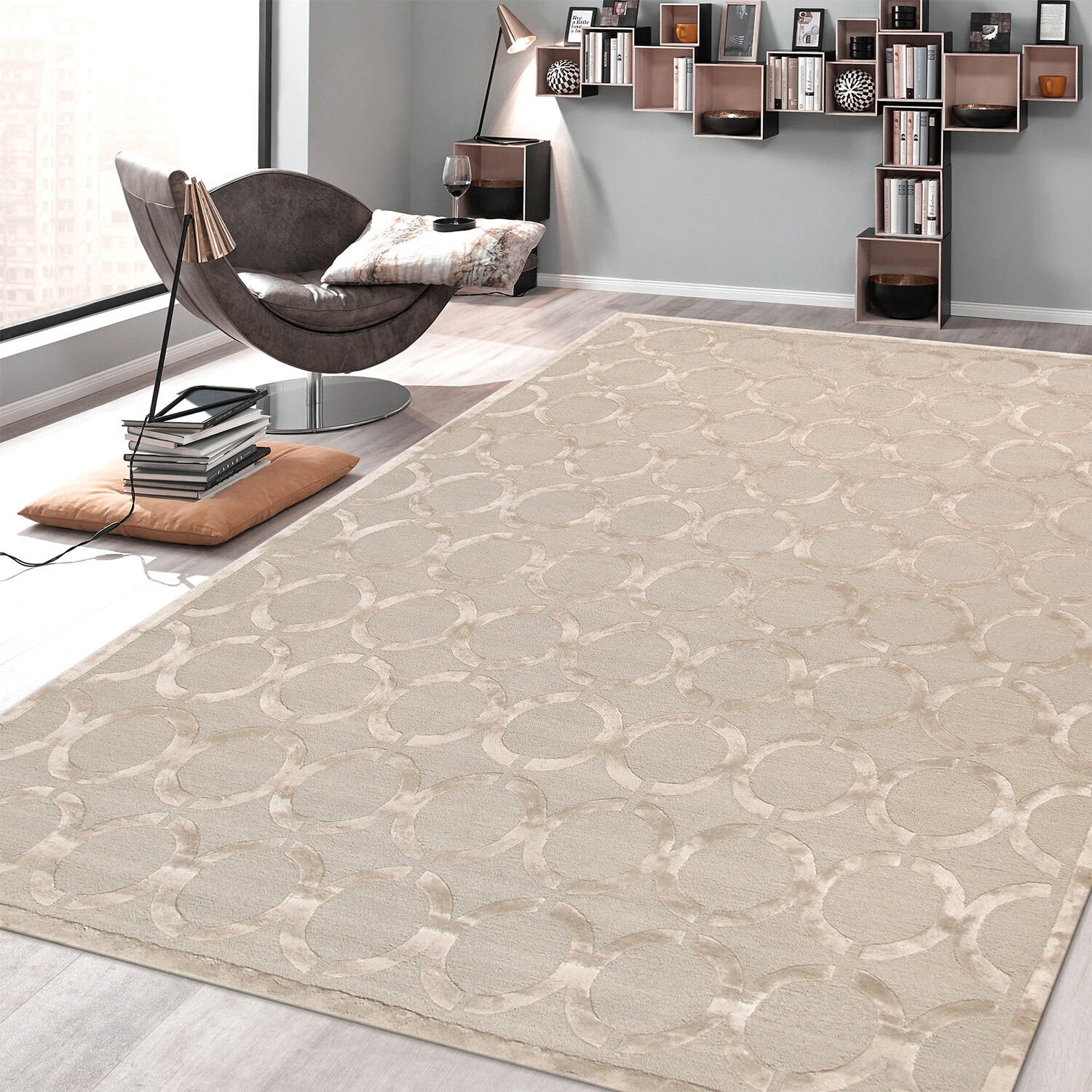 Pasargad Home Transitions Collection // Tufted Silk + Wool Area Rug // Beige