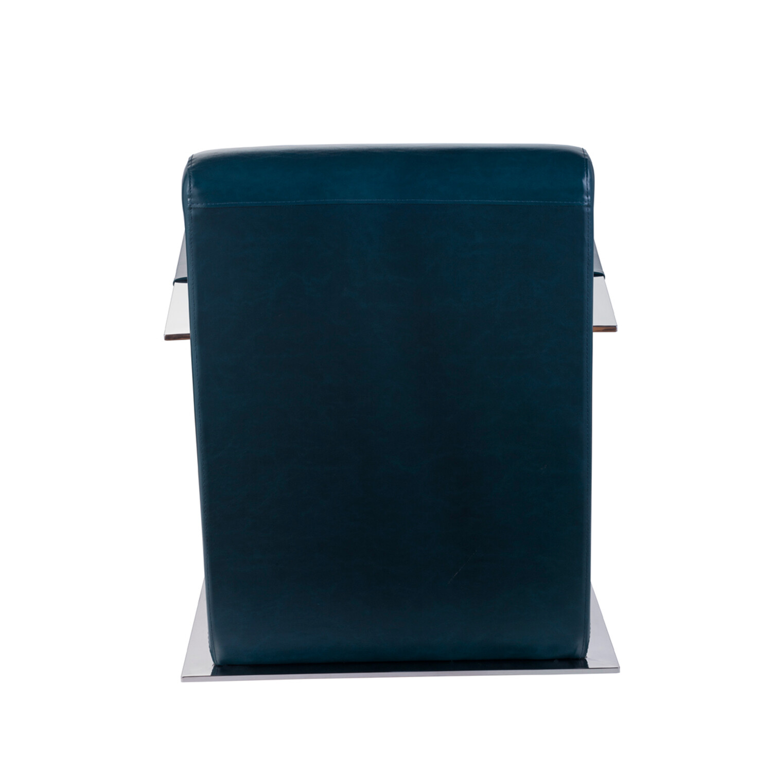 The aesthetic highlight of your favorite seating area will be contemporary yet understated with this faux leather armchair from Pasargad. Its solid color blends effortlessly into both monochromatic and vibrant palettes. The sturdy stainless steel base and high density foam filling contribute to the durability and functional convenience of the armchair.
