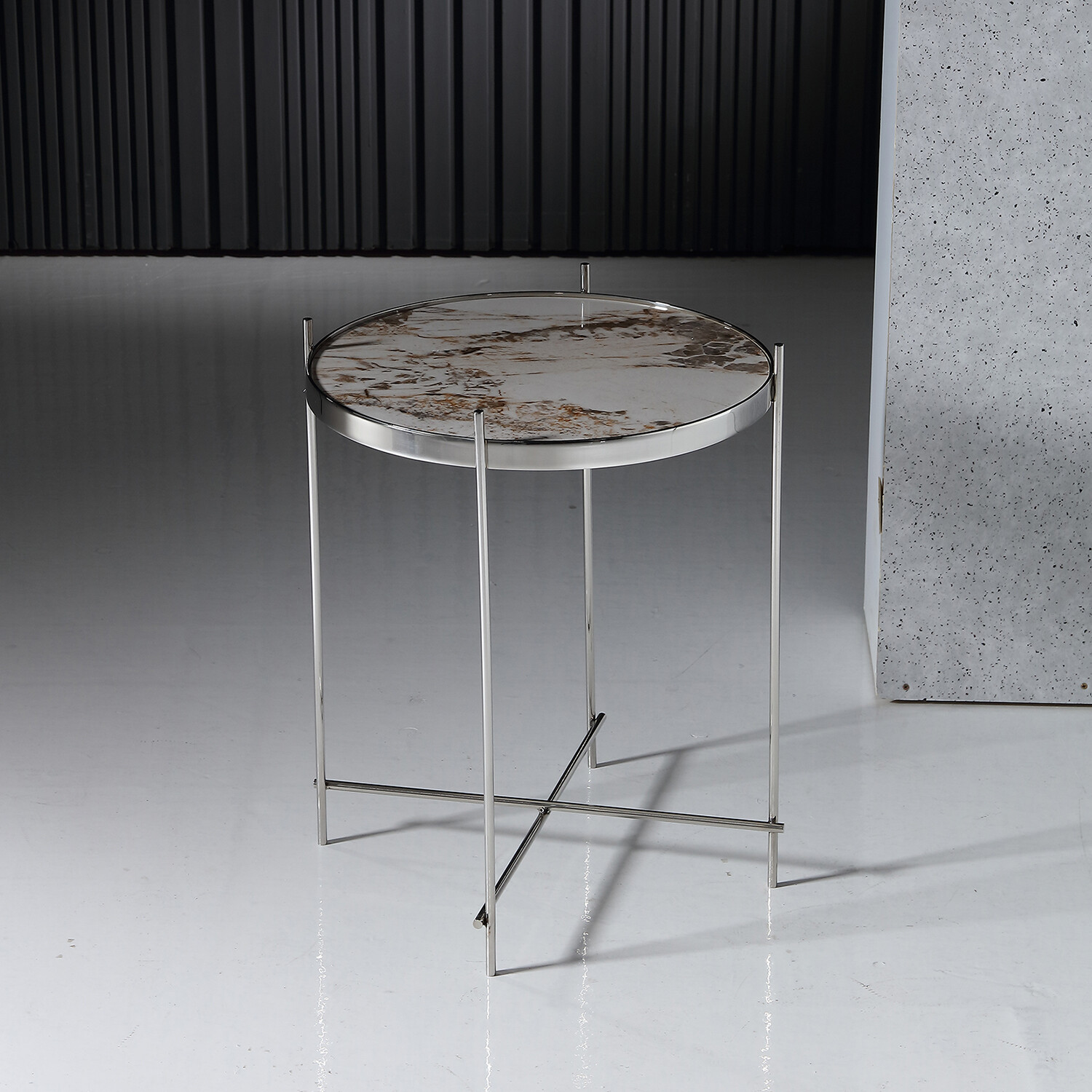 Your quest for the perfect side table has come to an end—that is if you lean toward contemporary. Decked out in a chic finish, the angled metal base is striking from every angle. This end table is topped off with a glass top with steel edging for a completely modern look.